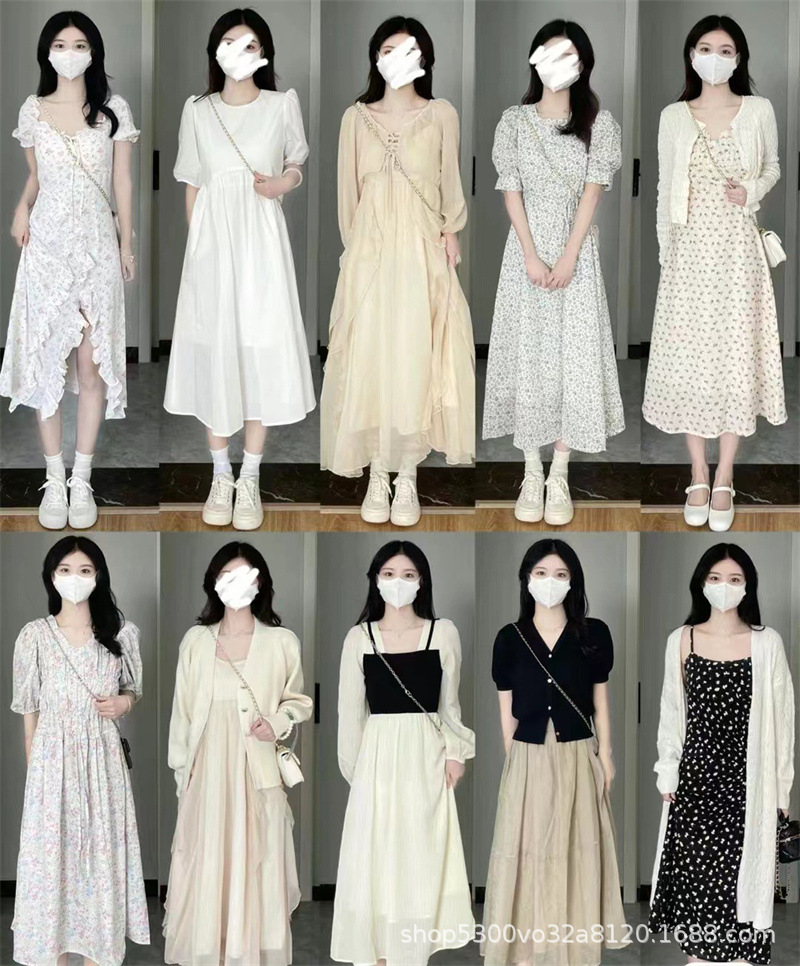 小清新连衣裙2024年春夏新款韩版收腰显瘦温柔风森系连衣裙批发 投诉