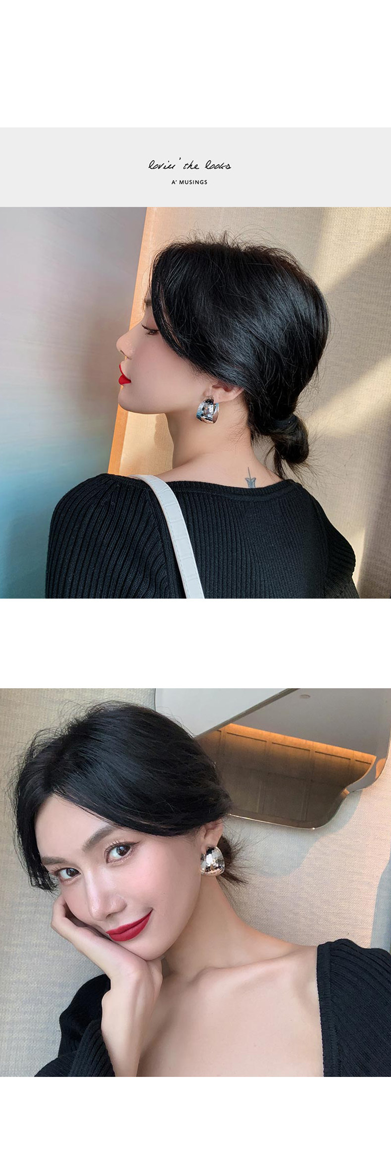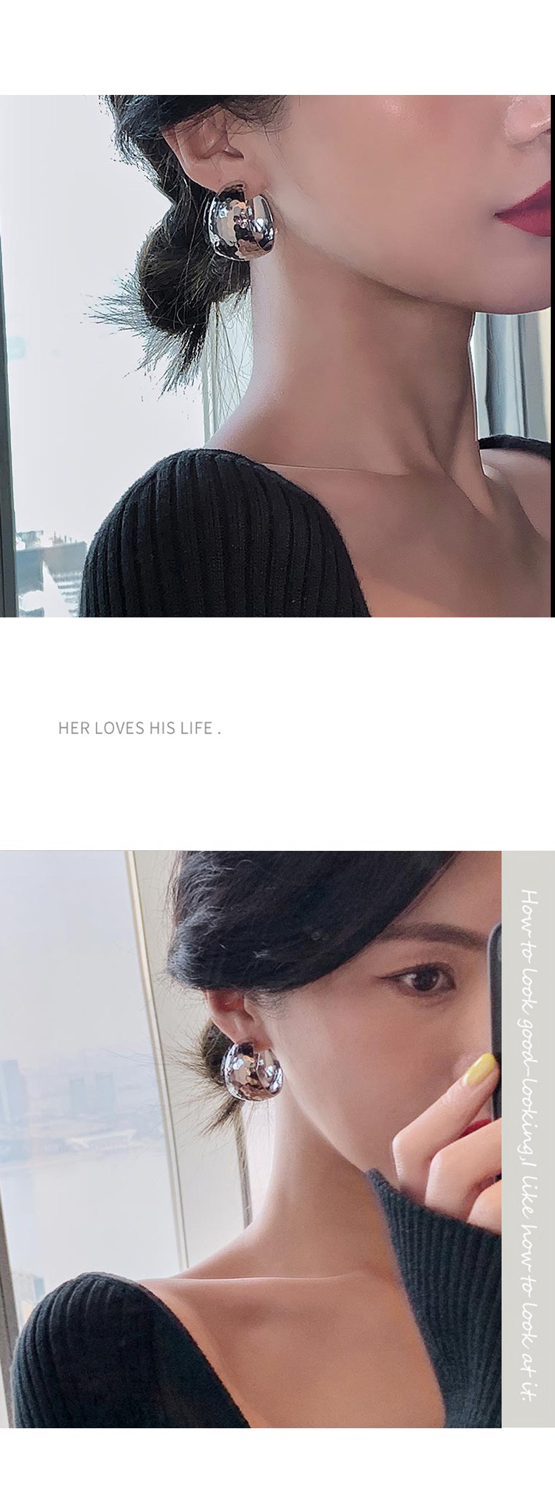 925银针耳饰欧美风宽面耳圈时尚耳环女夸张设计ins潮气质网红耳钉 English | 投诉