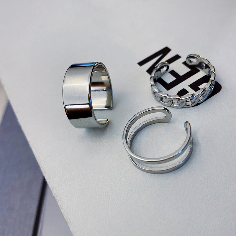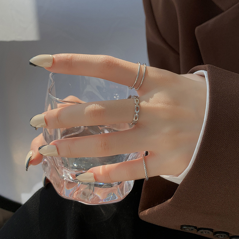 银色开口三件套戒指女小众设计ins潮气质时尚个性不掉色食指尾戒 English | 投诉