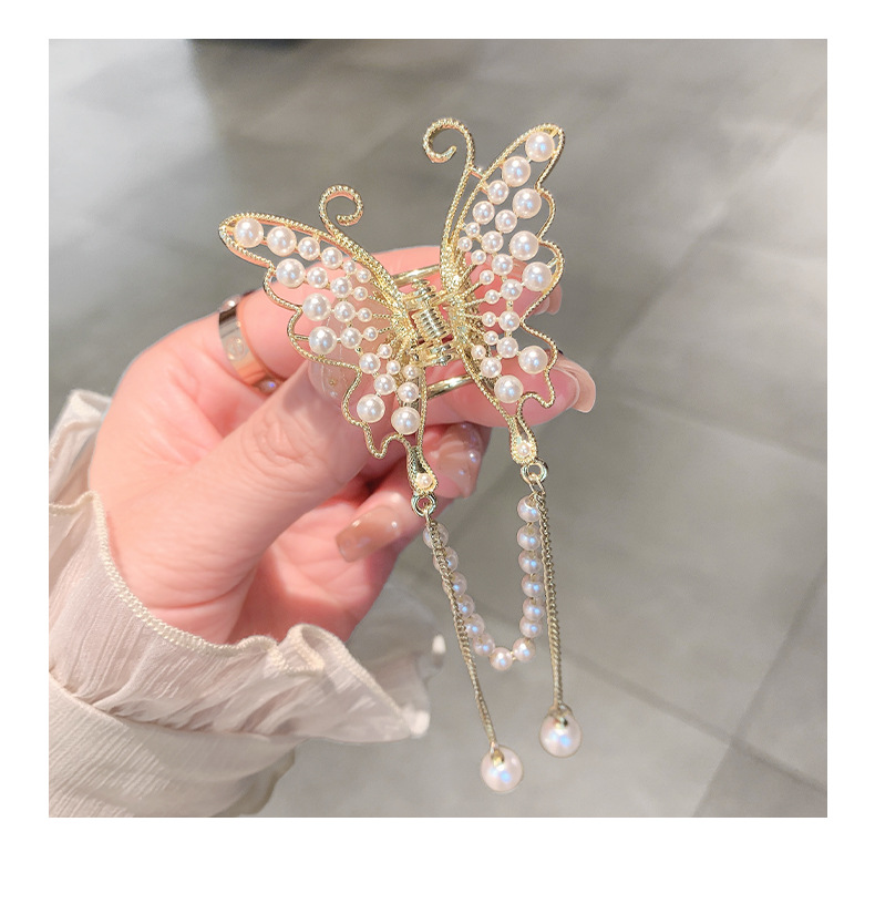 蝴蝶流苏珍珠抓夹女半扎发夹子头饰金属流苏发抓 English | 投诉
