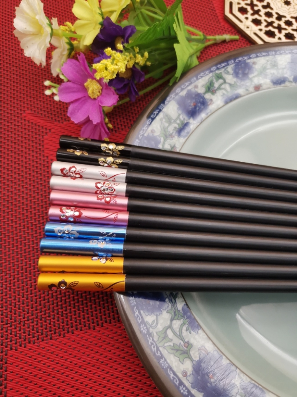 花之语家庭套餐防滑防霉合金筷子10双酒店餐厅