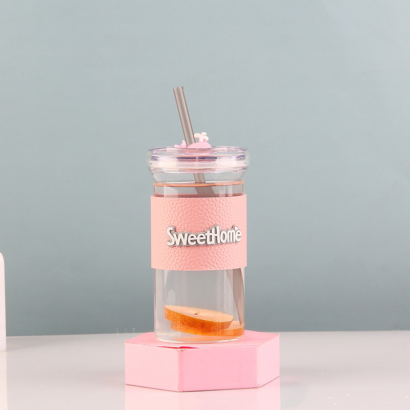玻璃吸管杯学生卡通创意可乐杯