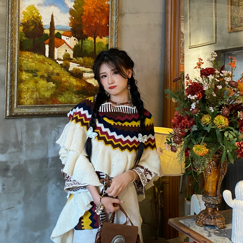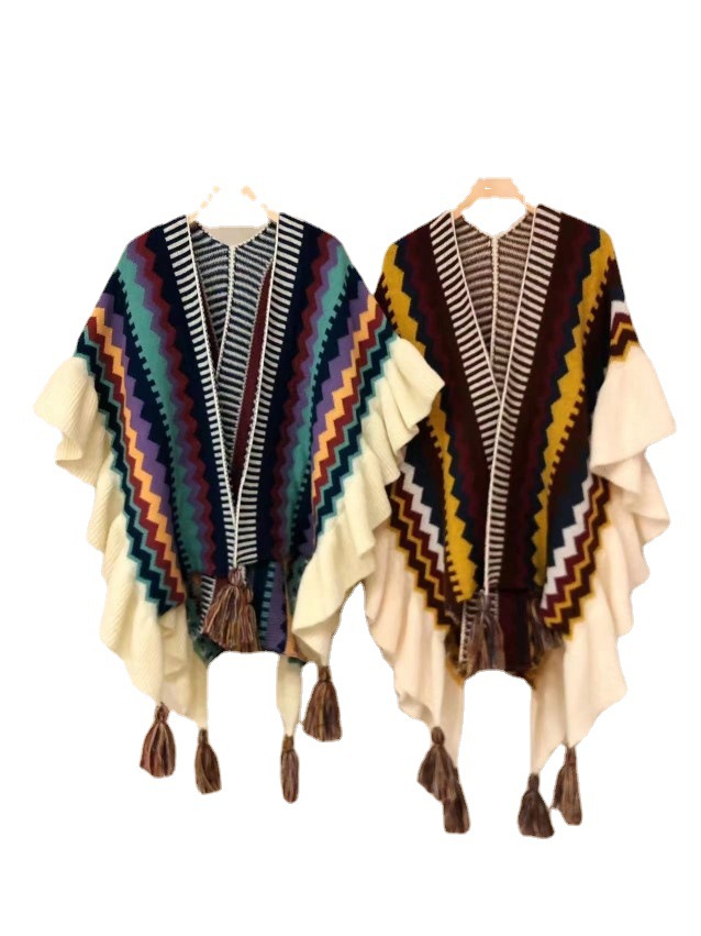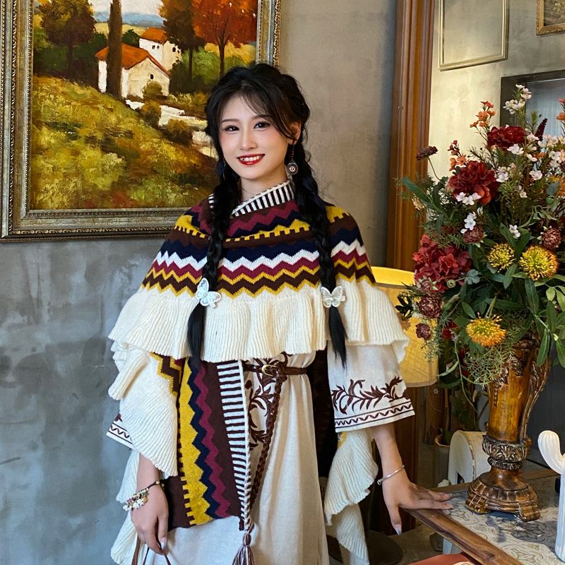 波西米亚復古穿搭拍照披肩女外搭民族风度假流苏加厚保暖披风斗篷 English | 投诉
