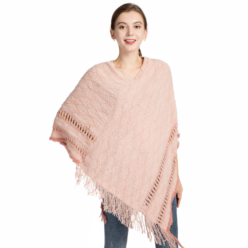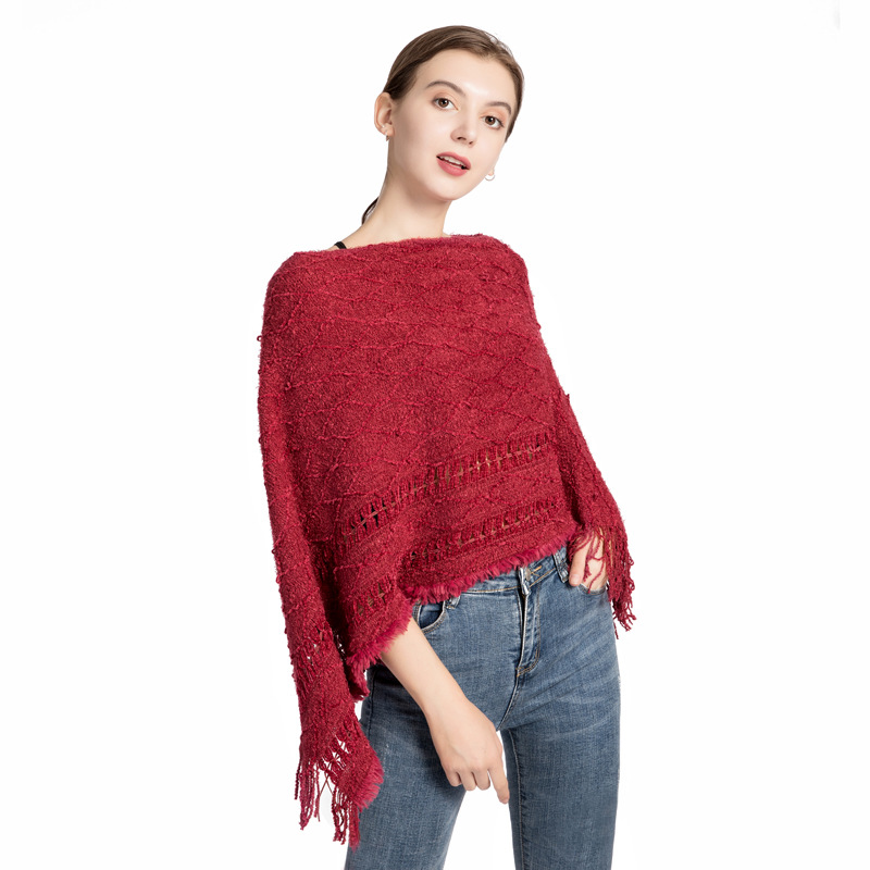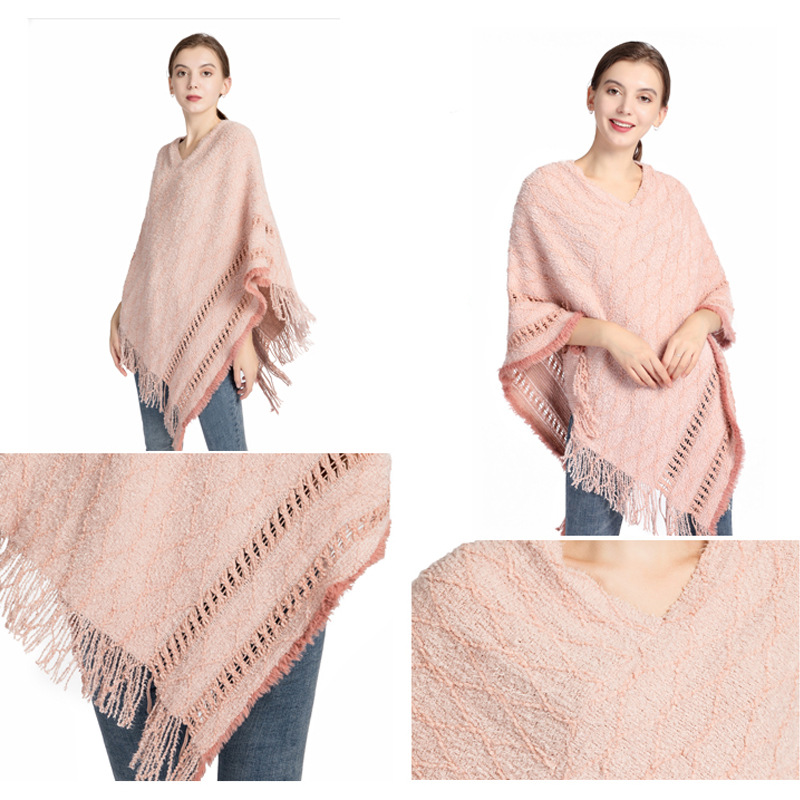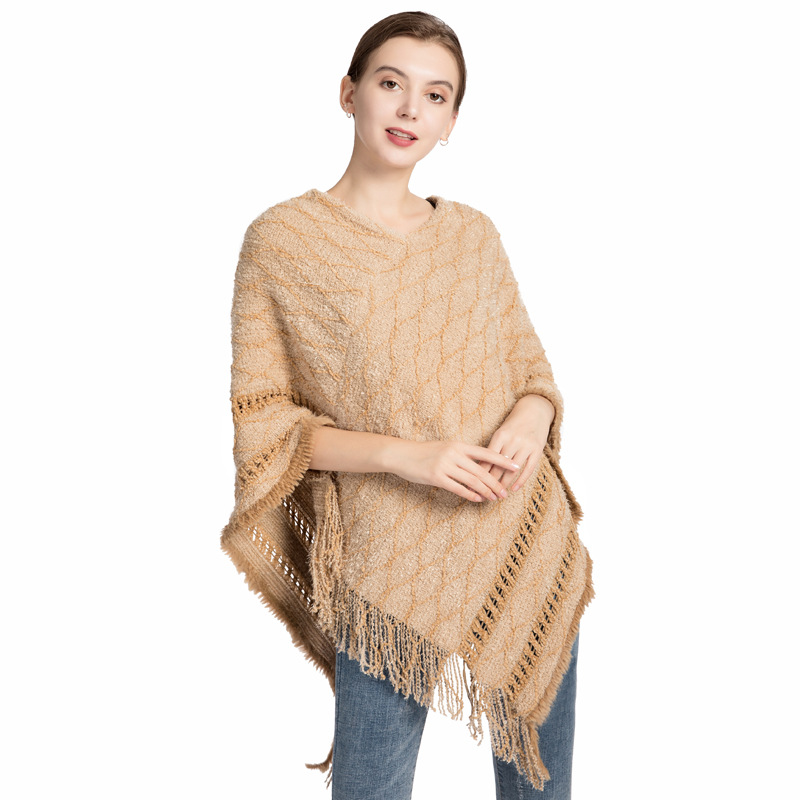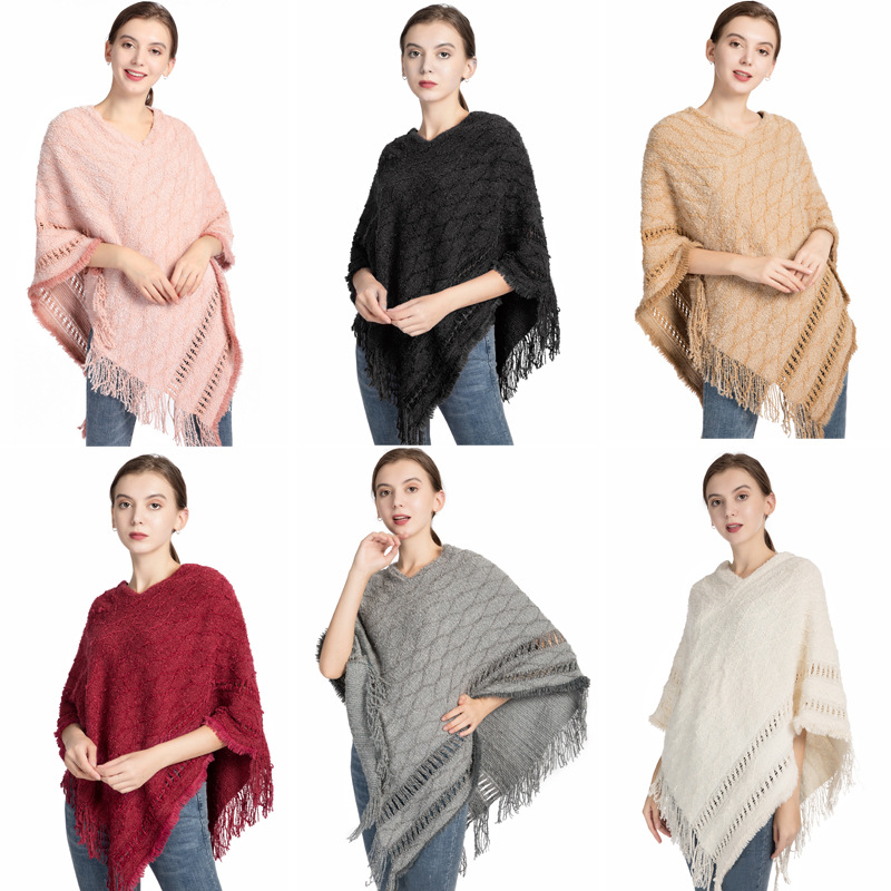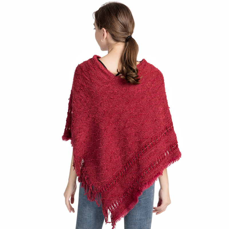 批发仿羊绒针织披肩女 秋冬新款流苏保暖外贸现货套头斗篷poncho English | 投诉