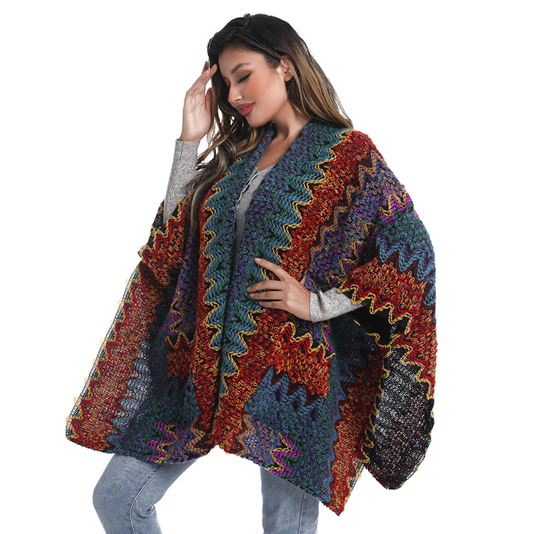 秋冬保暖口袋针织披肩外贸现货批发民族风披肩亚马逊速卖通披肩女 English | 投诉