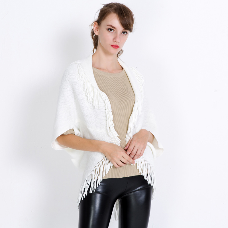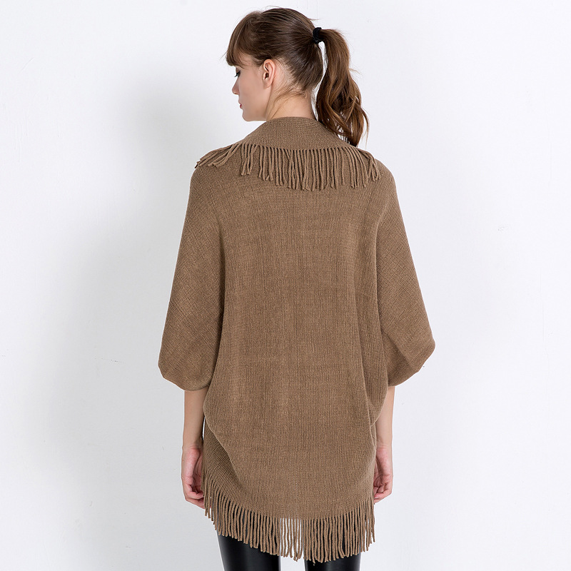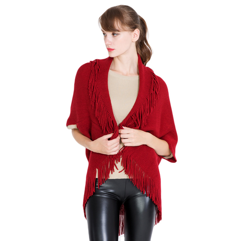 欧美外贸女秋冬针织流苏斗篷披肩单色蝙蝠套衫保暖平板披风速卖通 English | 投诉