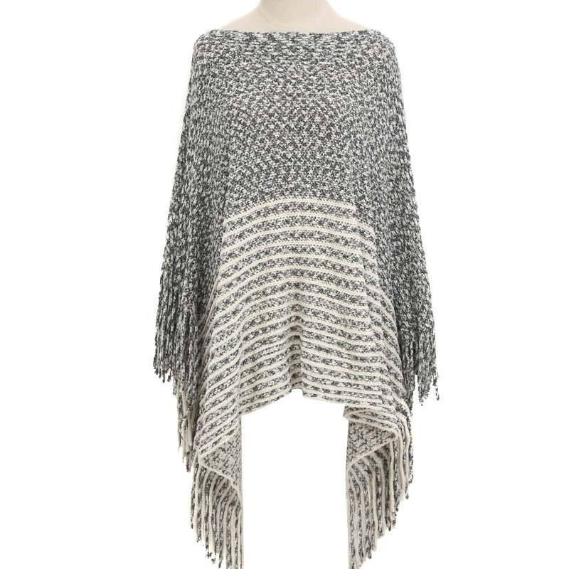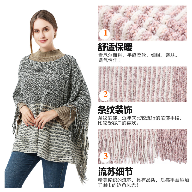 雪尼尔夹花一字领斗篷披肩女大码针织衫披风poncho外贸现货披肩 English | 投诉