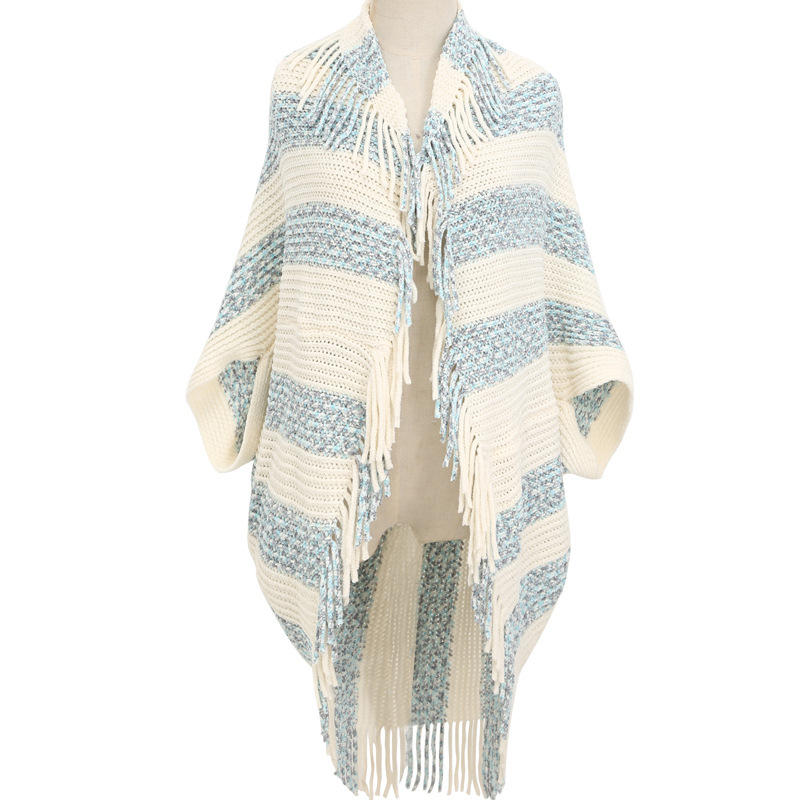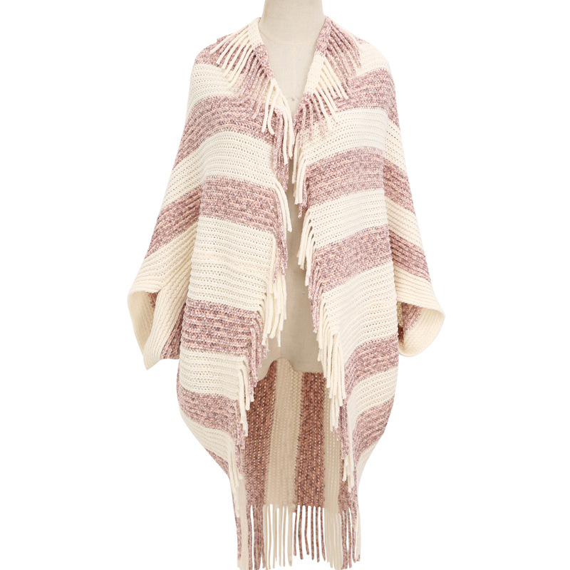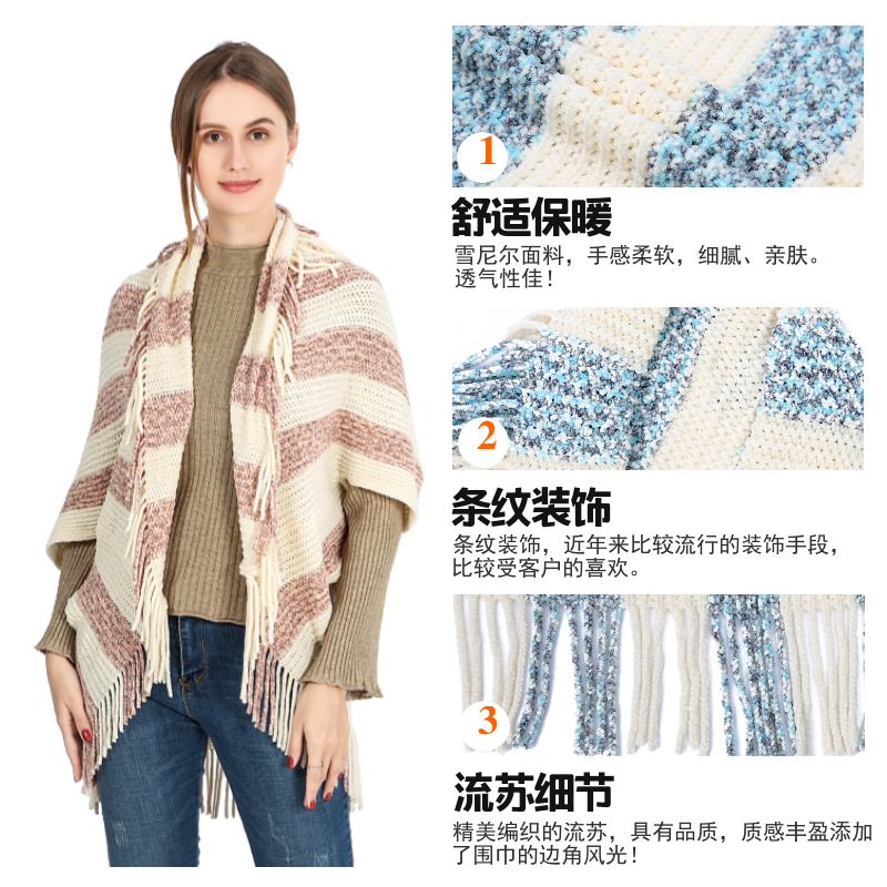 雪尼尔条纹开衫披肩女 无袖子开衫围巾跨境批发斗篷披肩shawl