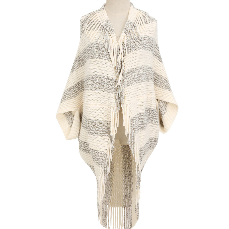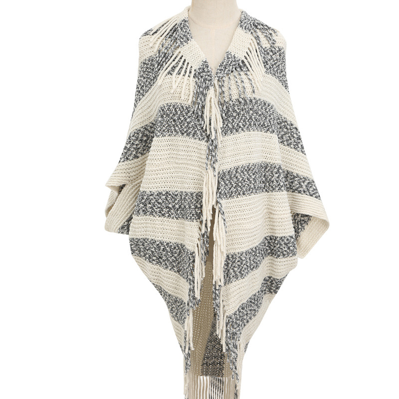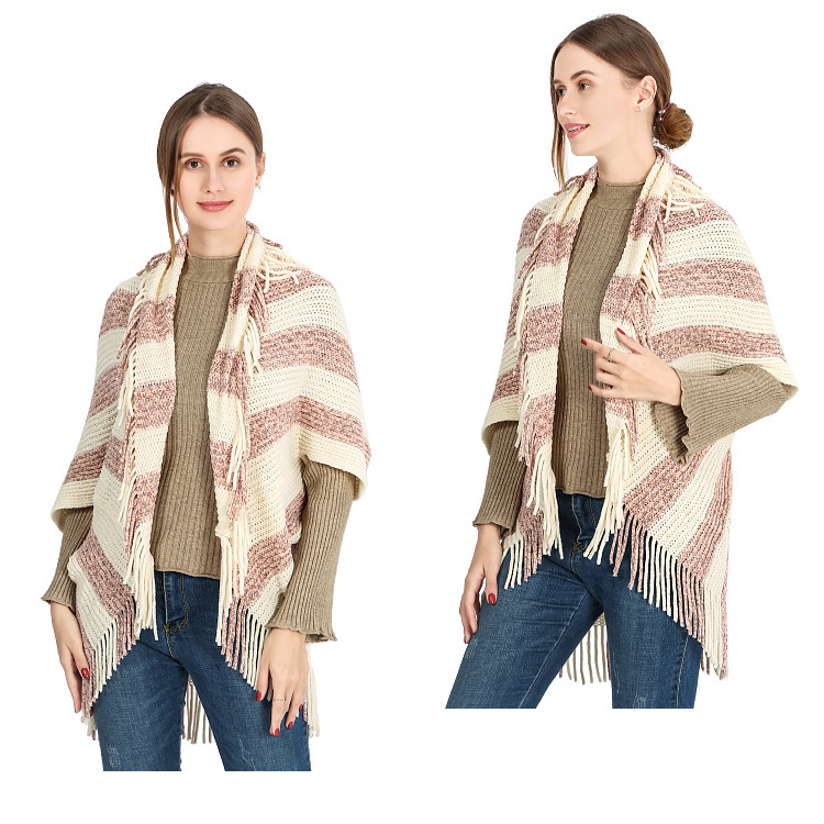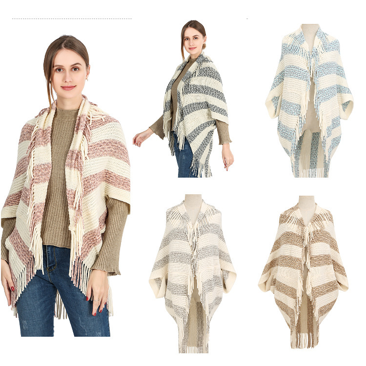 雪尼尔条纹开衫披肩女 无袖子开衫围巾跨境批发斗篷披肩shawl English | 投诉
