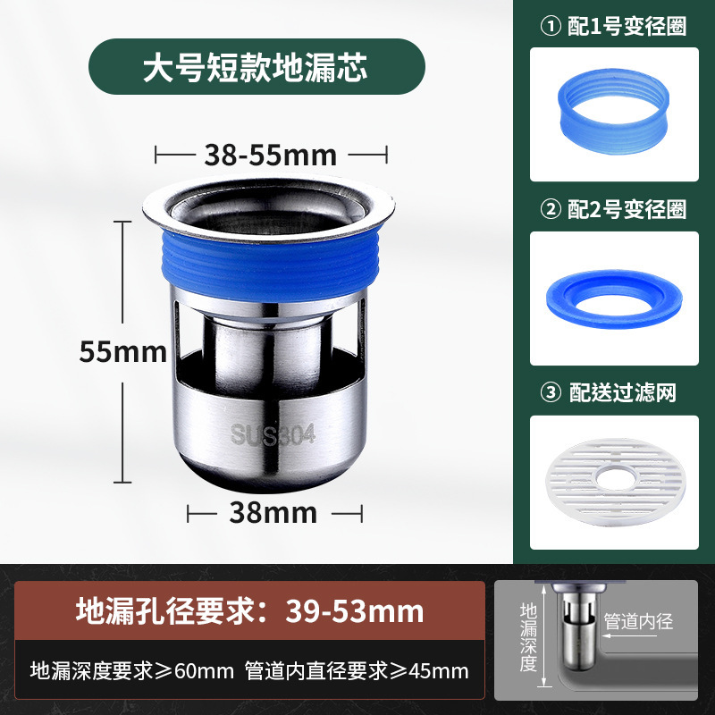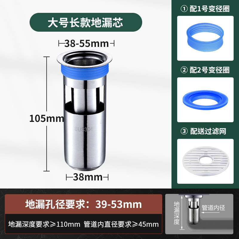 大直径长款 -不锈钢防臭芯【送变径圈+毛发滤网】 ¥1974 0件 缺货