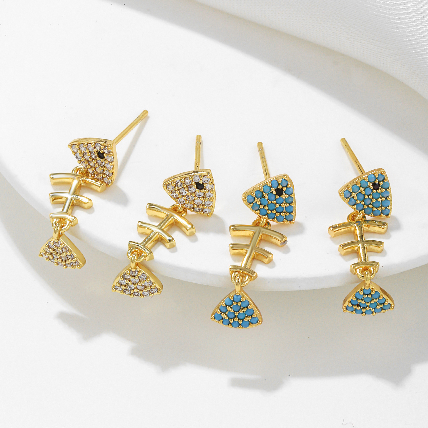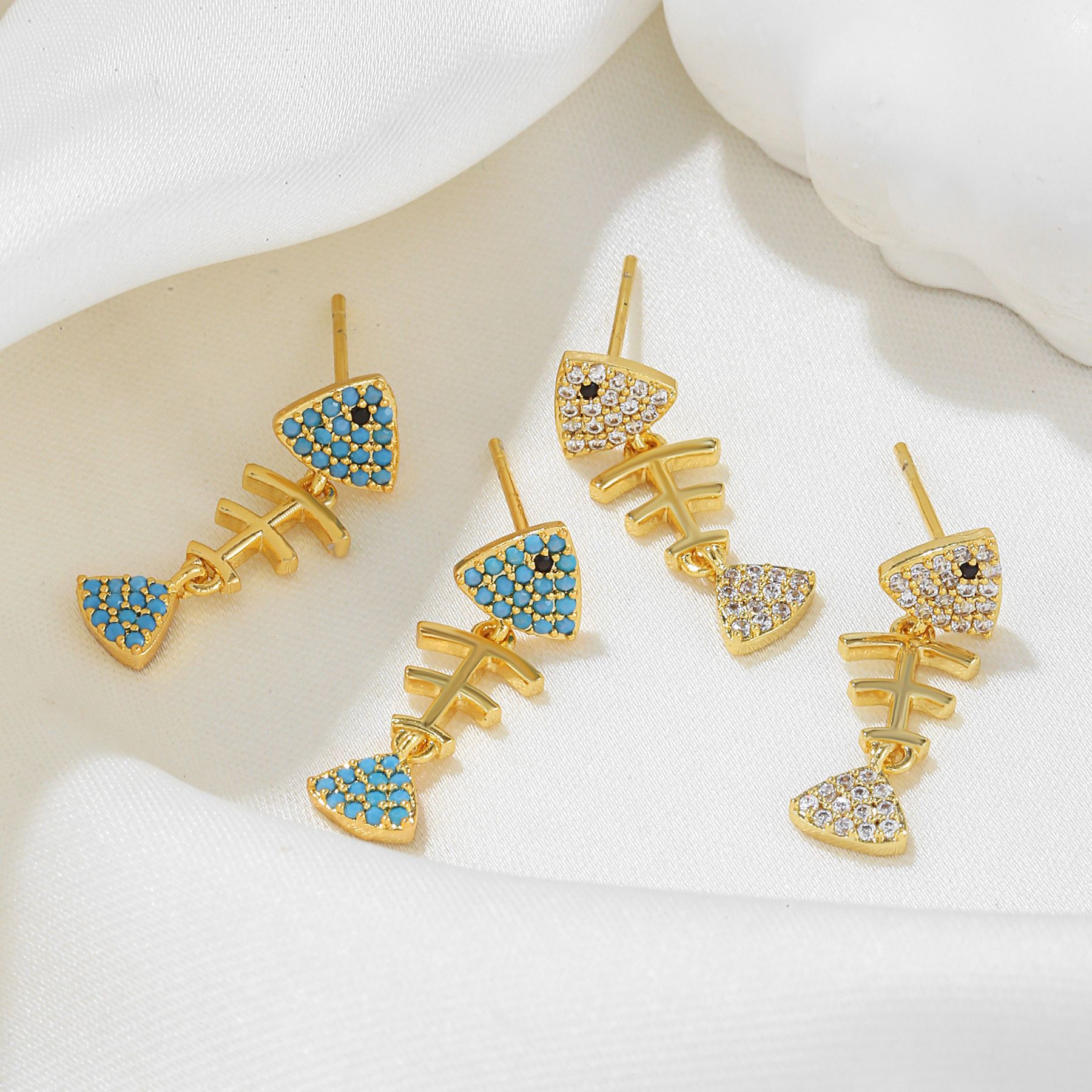 韩式S925银针微镶锆石鱼骨耳钉女个性小巧时尚网红潮品女耳环耳饰 English | 投诉