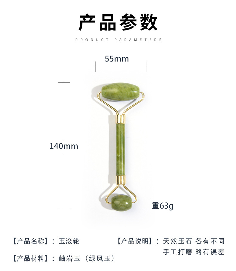 岫岩玉石滚轮按摩滚轮套装脸部美容器双头绿凤玉手动按摩棒经络 投诉