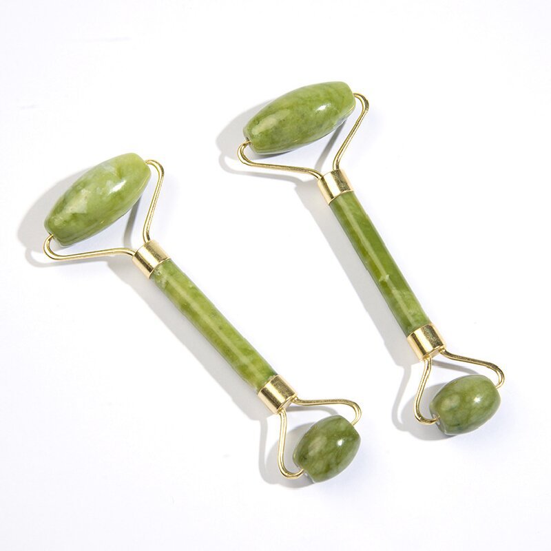 岫岩玉石滚轮按摩滚轮套装脸部美容器双头绿凤玉手动按摩棒经络