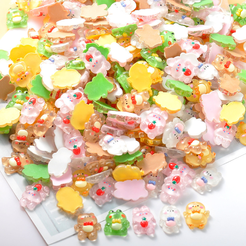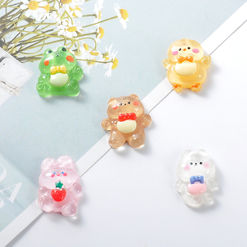 卡通动物半透小兔小熊树脂配件批发 diy手机壳奶油胶发饰材料包