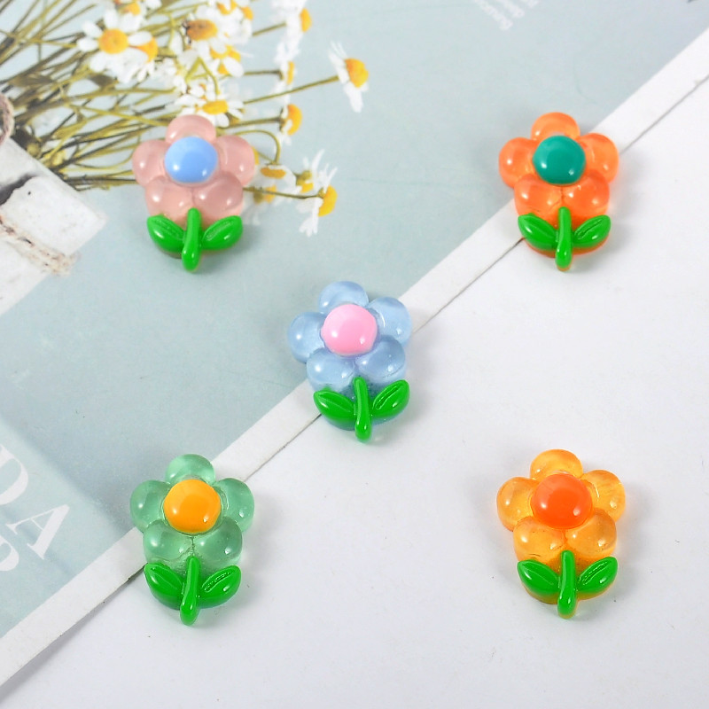 新款透明向日葵小花树脂配件diy奶油胶手机壳头饰发夹收纳盒贴片