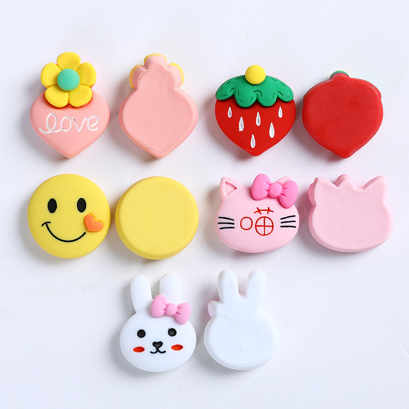 树脂配件 兔子笑脸草莓喵系列手机壳贴片diy制作材料皮筋发夹配件