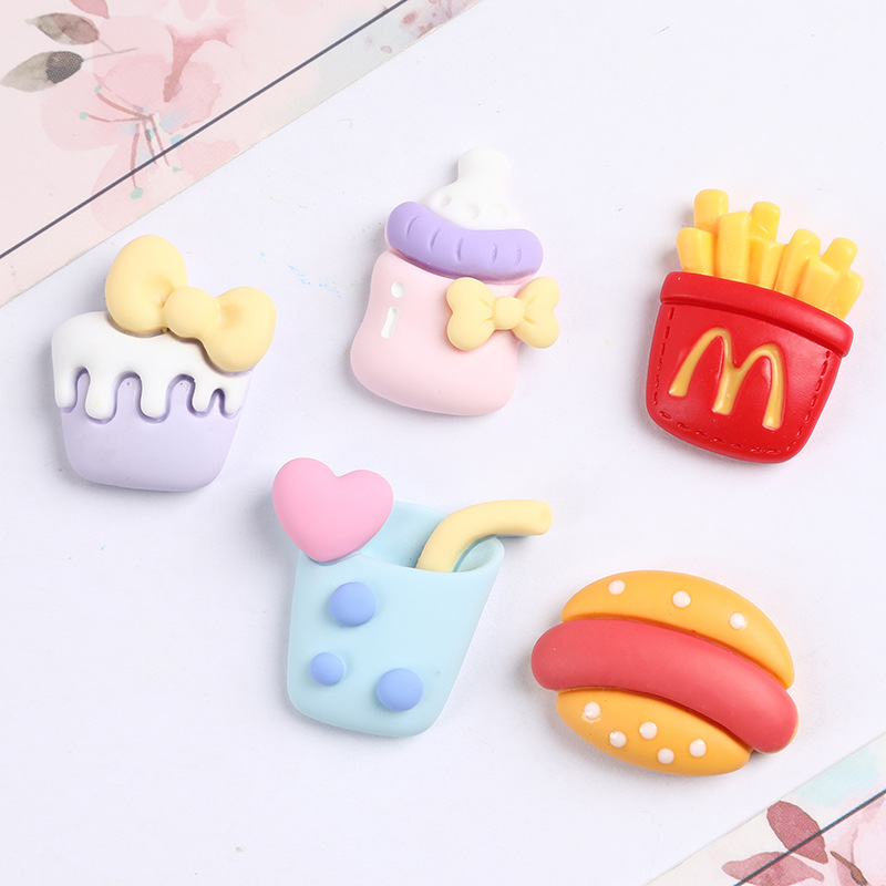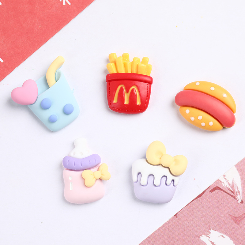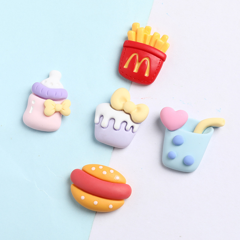 树脂配件薯条汉堡奶茶手机壳水杯贴片汽车收纳盒鞋服发饰饰品配饰