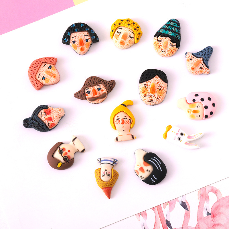 树脂配件涂鸦人物头像手机壳diy制作材料汽车手环口杯笔盒贴饰