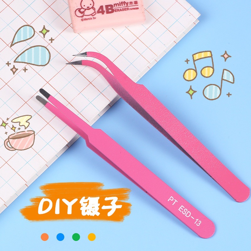 手工自制奶油胶手机壳DIY小工具粉色弯头直头镊子不易生锈滴胶