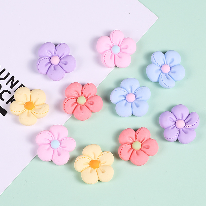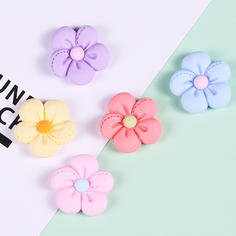 仿布艺五瓣花奶油胶手机壳树脂饰品小配件diy材料手工自制滴胶