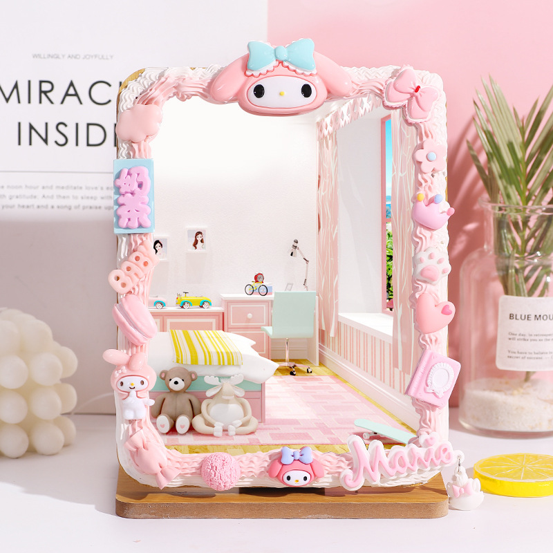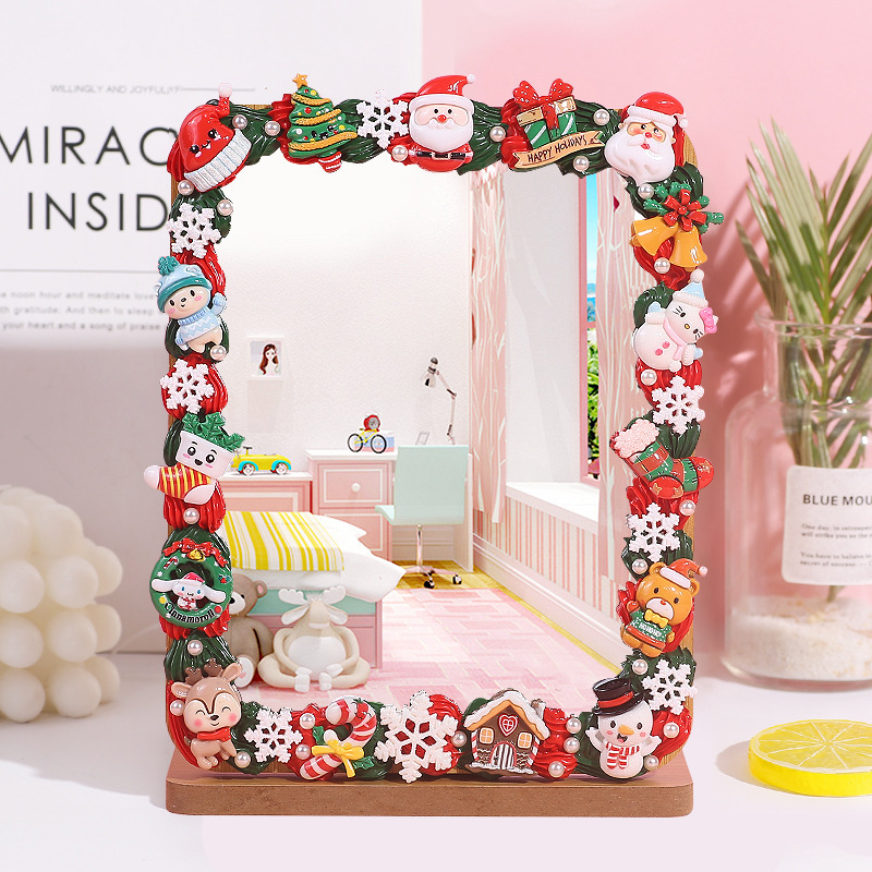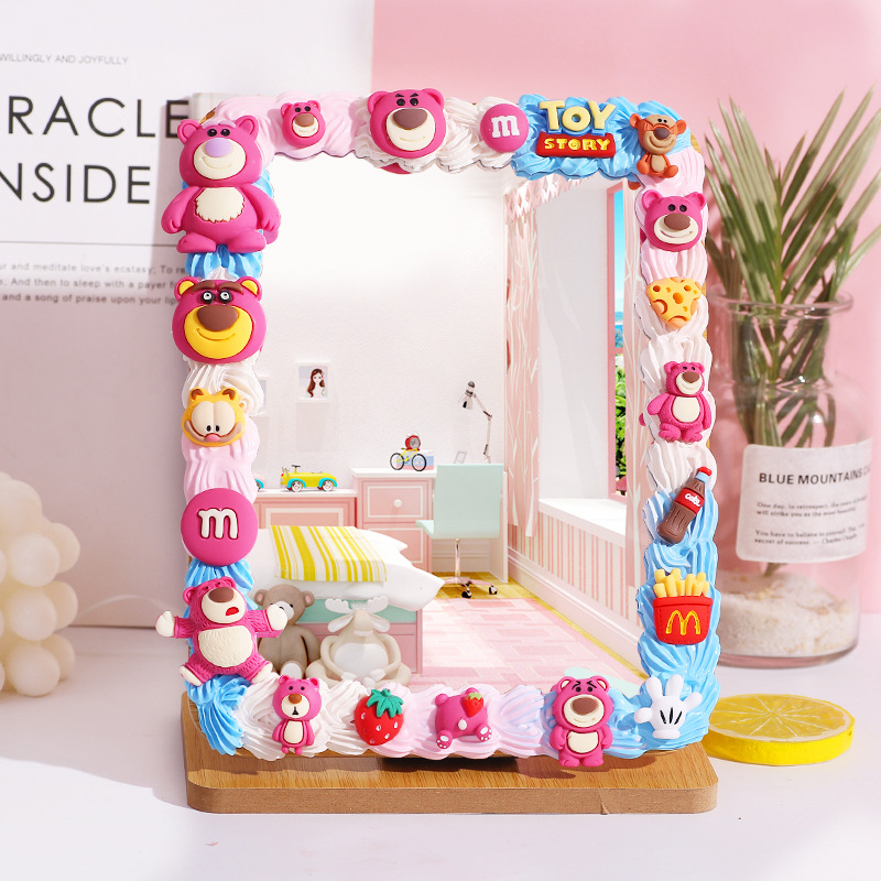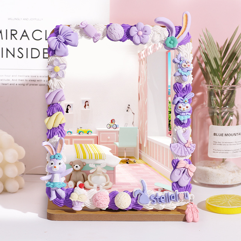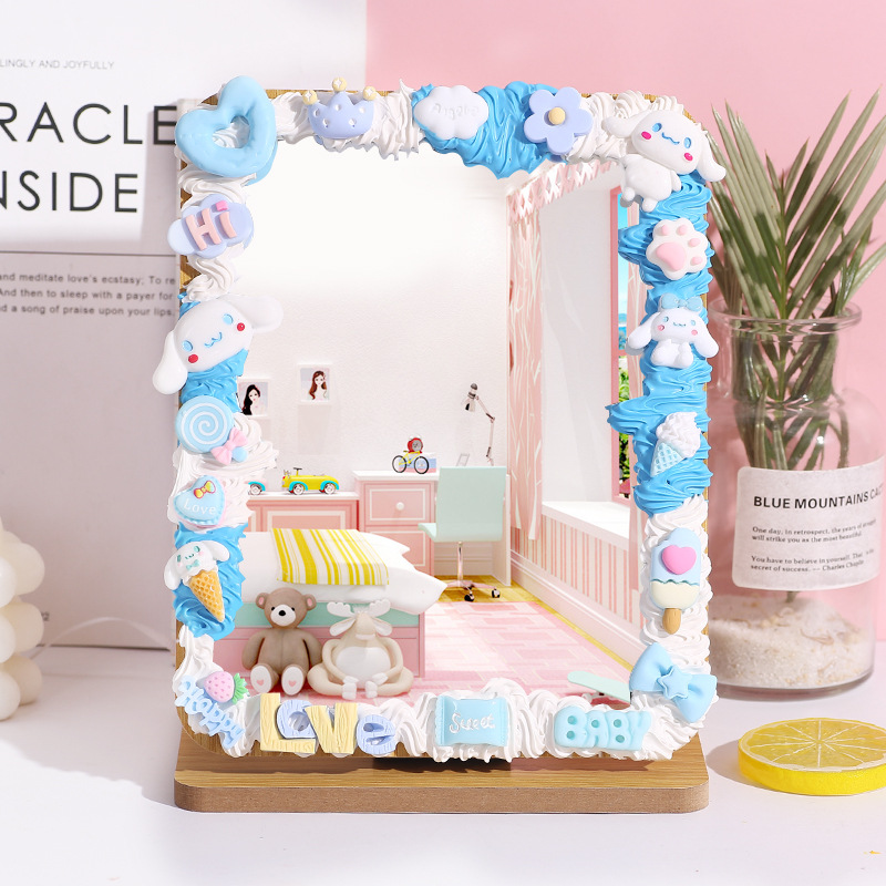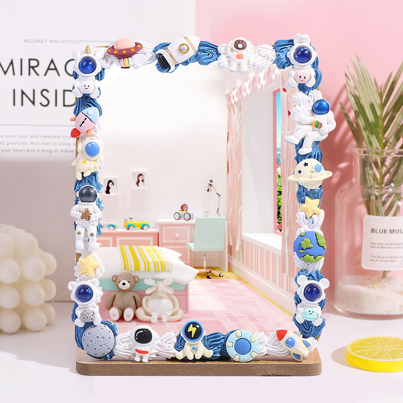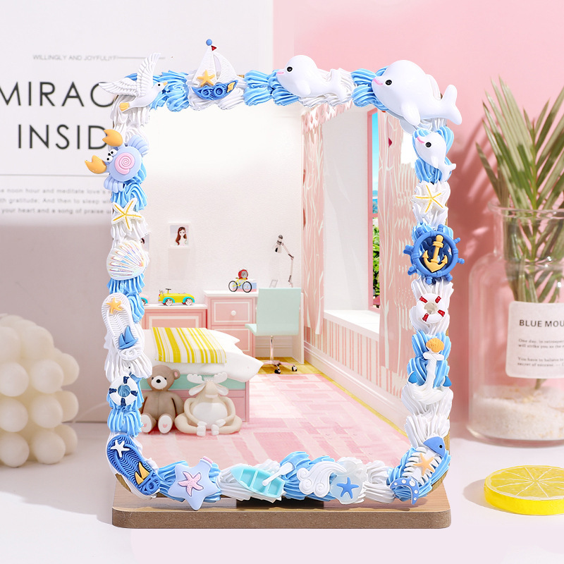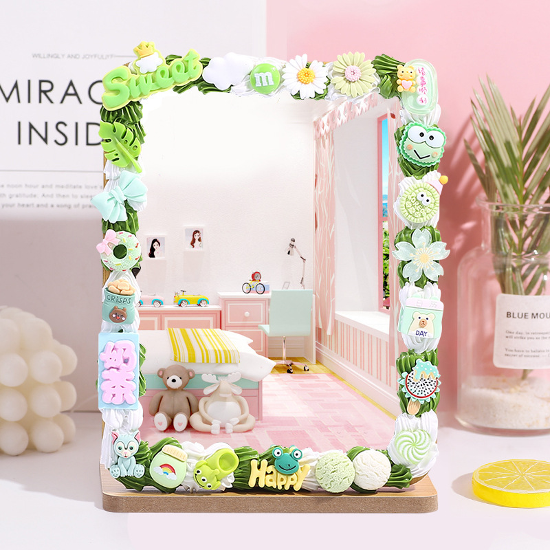 手工DIY奶油胶木质化妆镜材料包 自制便携镜子学生桌面梳妆镜家用