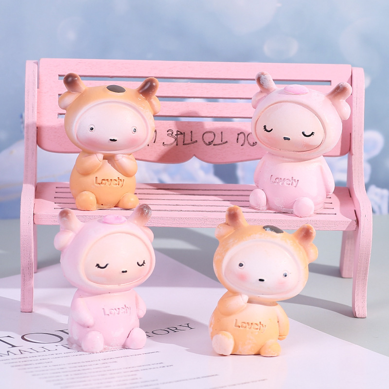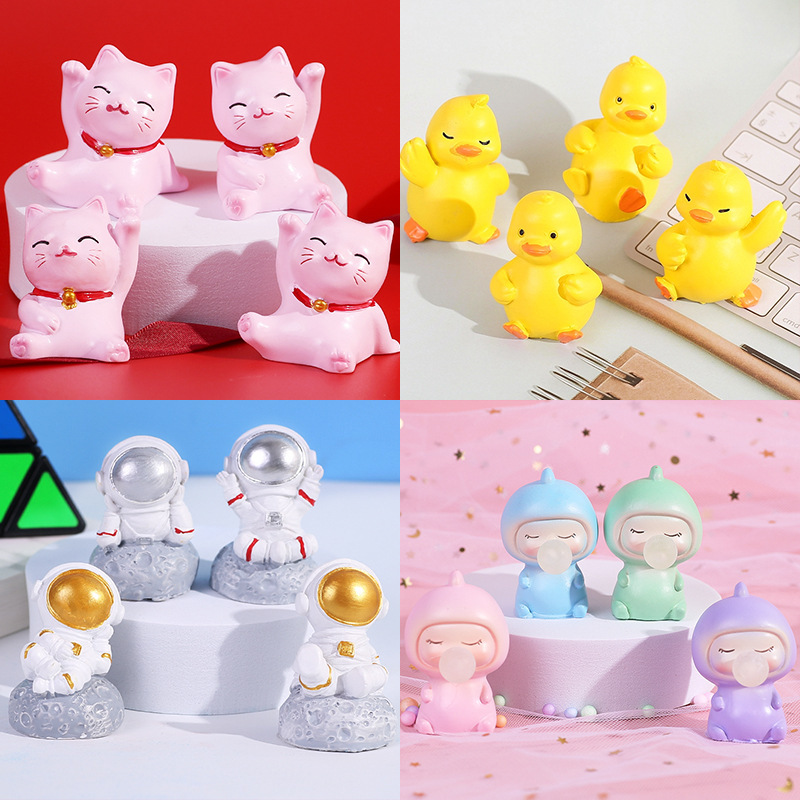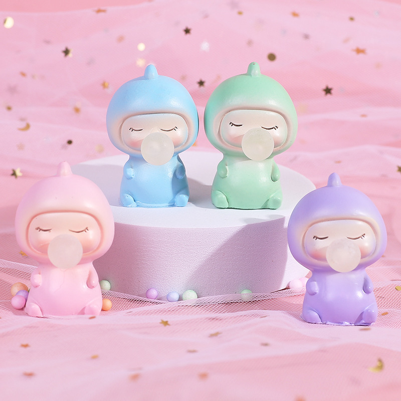 创意可爱卡通宇航员泡泡女孩树脂摆件恐龙公仔DIY车用家居装饰品