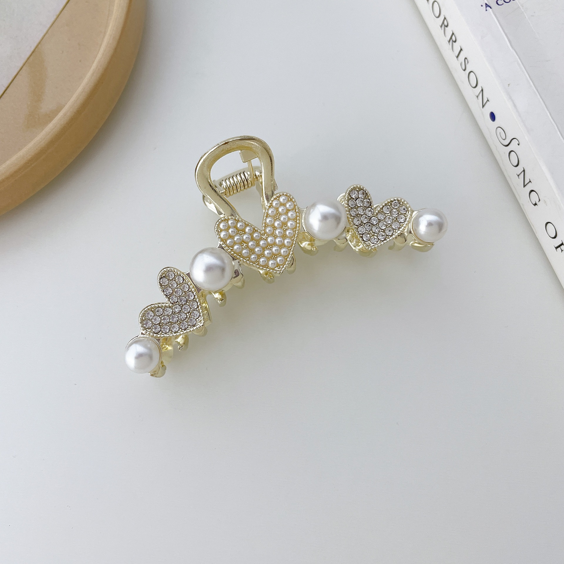 合金珍珠水钻爱心发夹盘发抓夹鲨鱼夹女侧边夹 English | 投诉