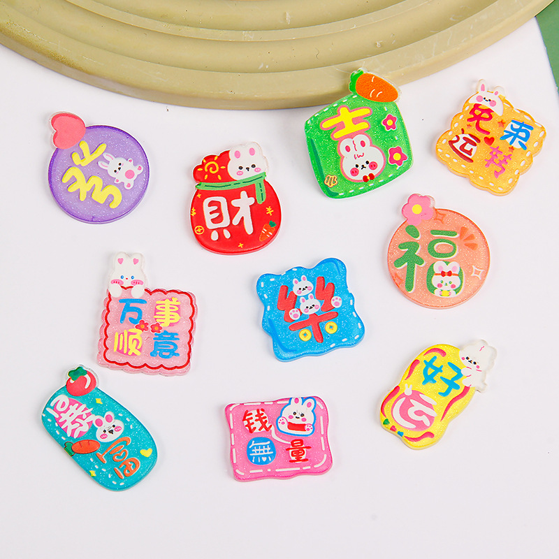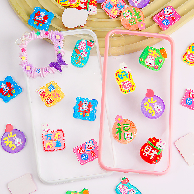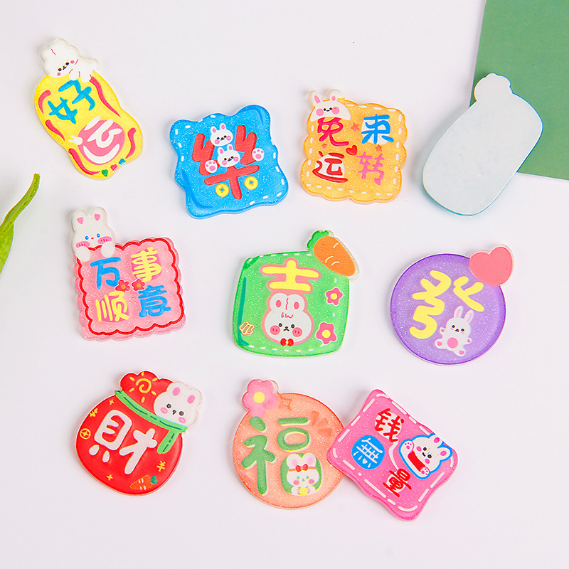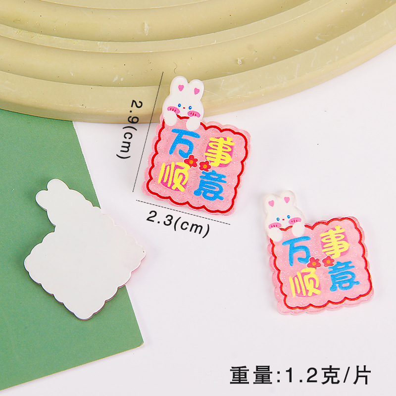 卡通亚克力贴片 新款兔年大吉字牌diy奶油胶手机壳饰品冰箱贴配件
