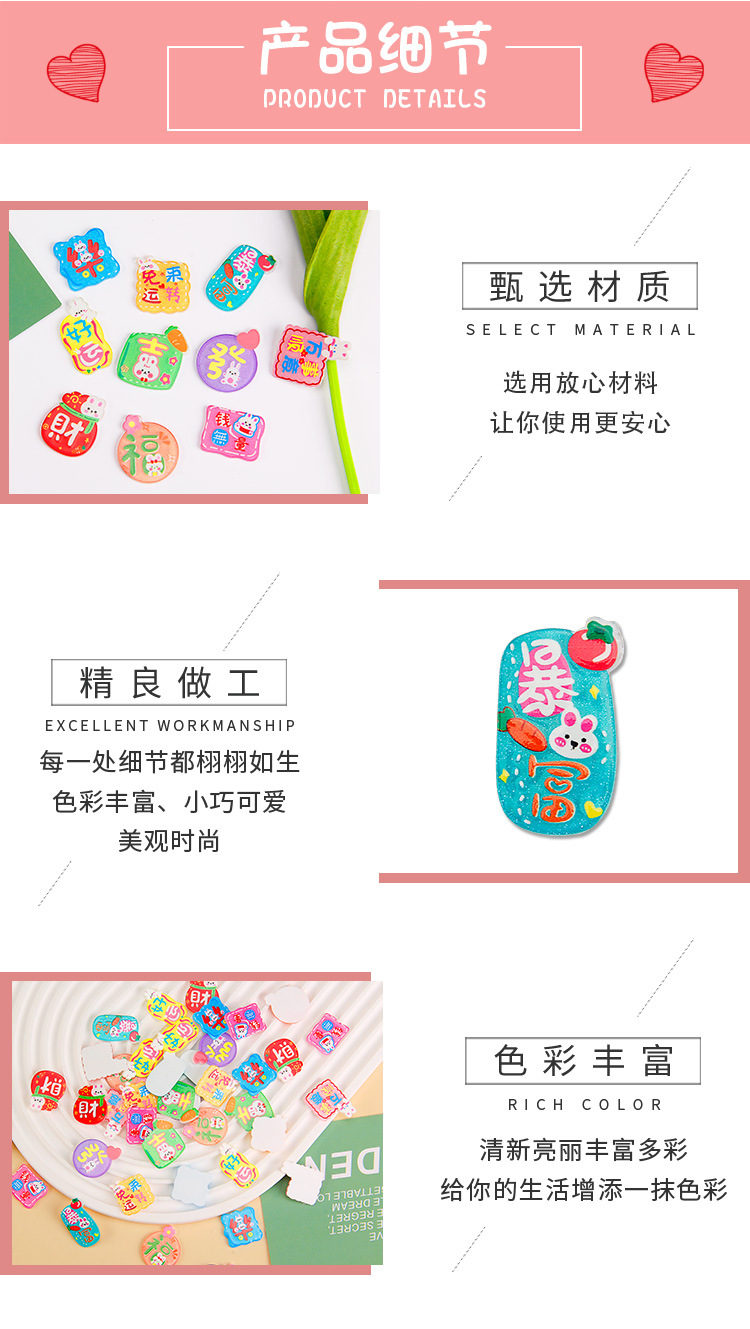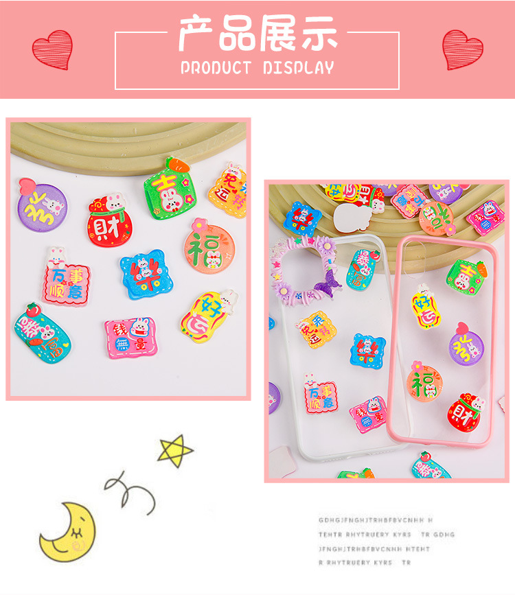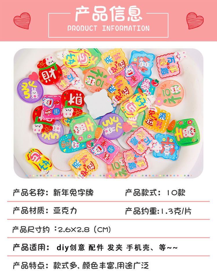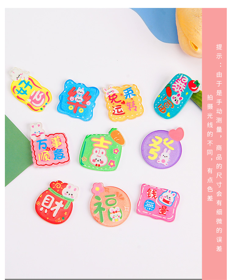 卡通亚克力贴片 新款兔年大吉字牌diy奶油胶手机壳饰品冰箱贴配件 投诉
