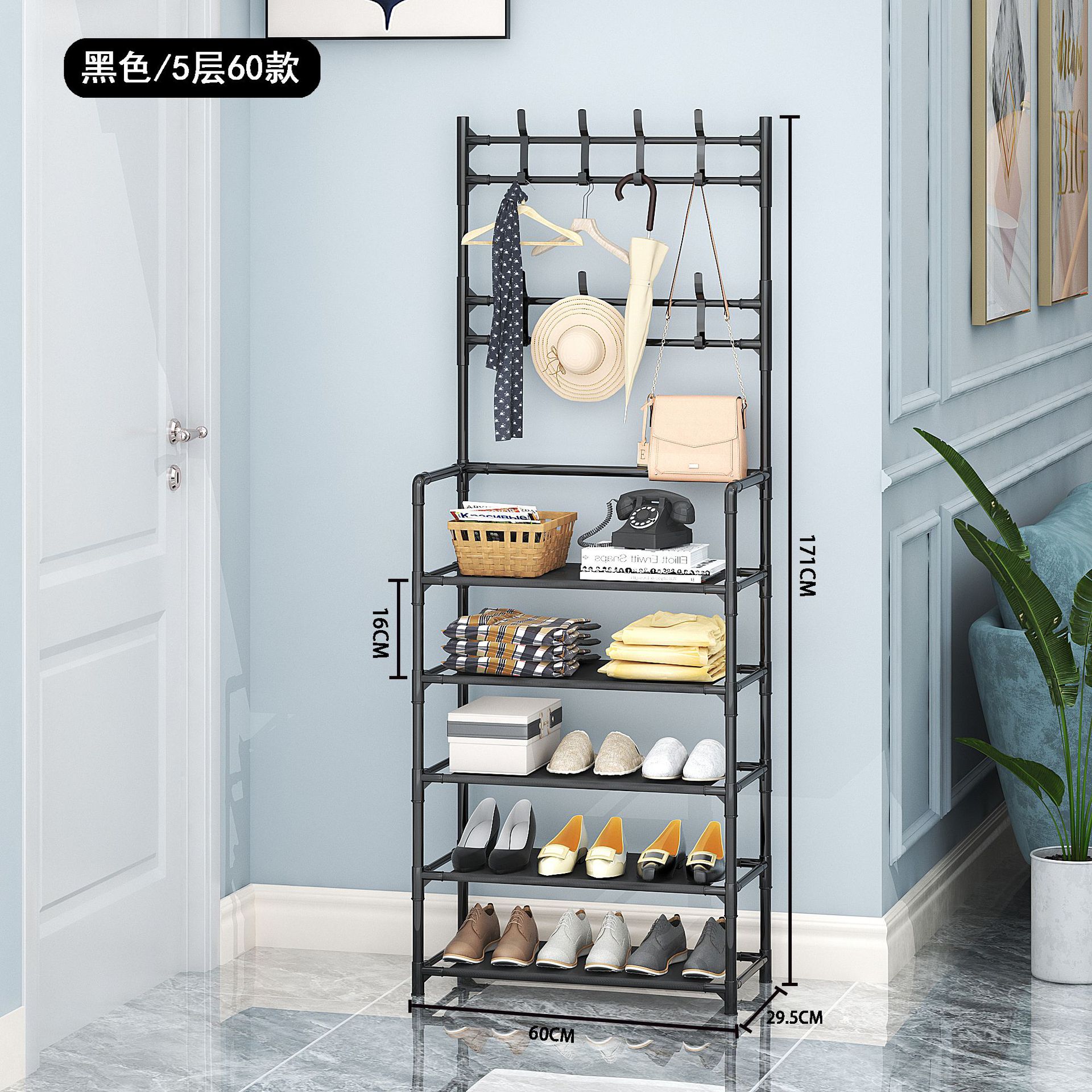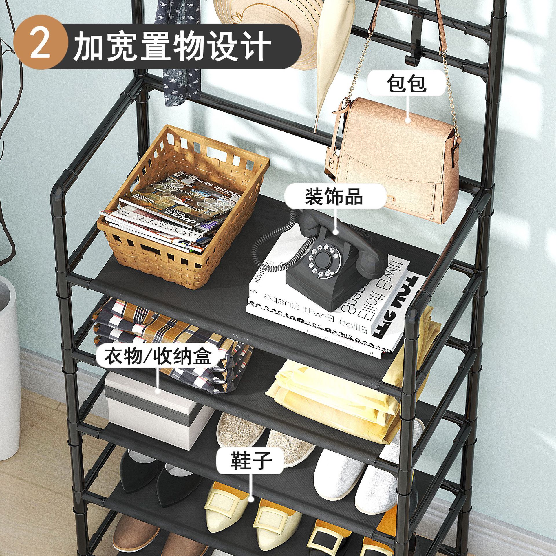 多功能鞋帽一体架落地无纺布鞋架组装衣帽架新款烤漆管鞋子收纳架