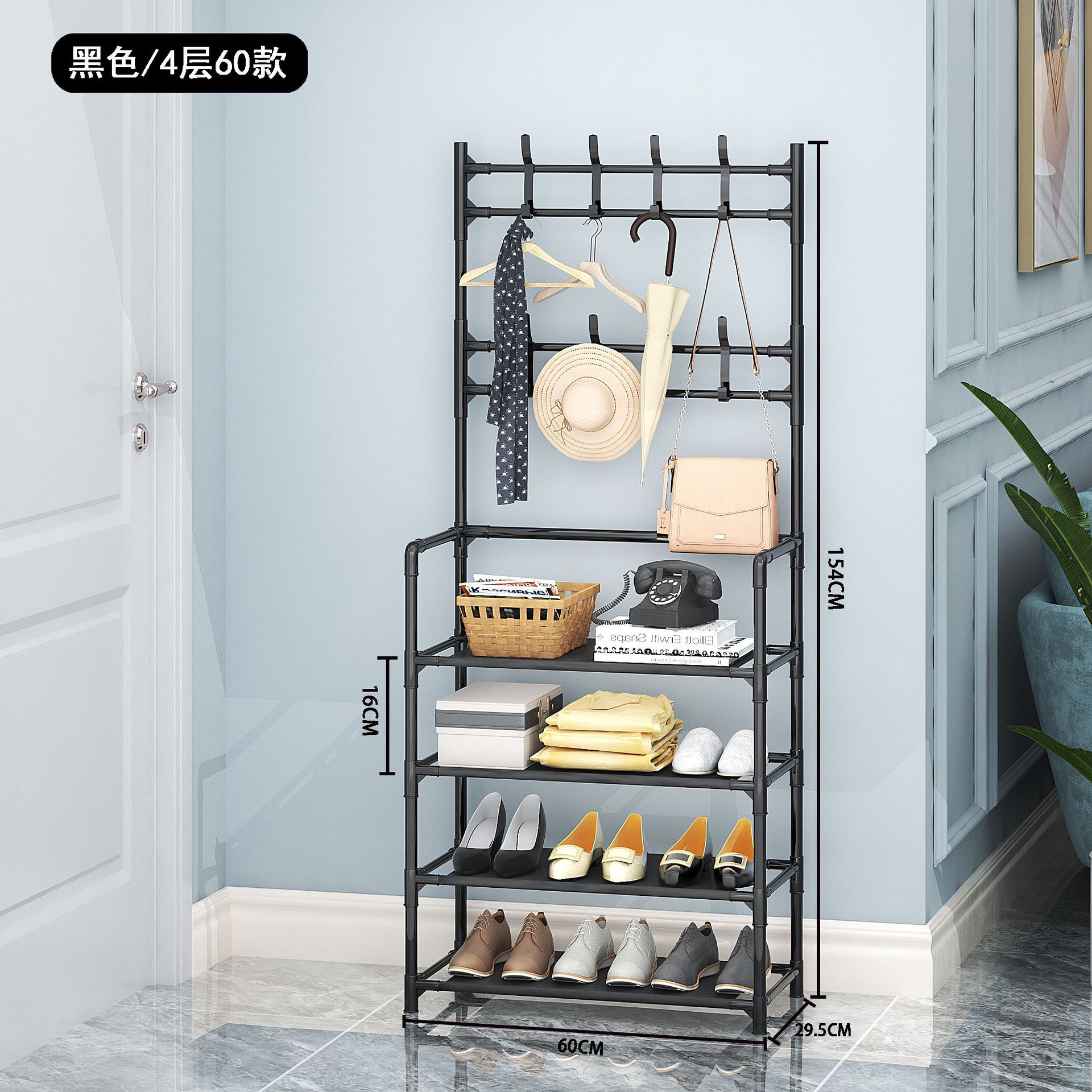 多功能鞋帽一体架落地无纺布鞋架组装衣帽架新款烤漆管鞋子收纳架 投诉