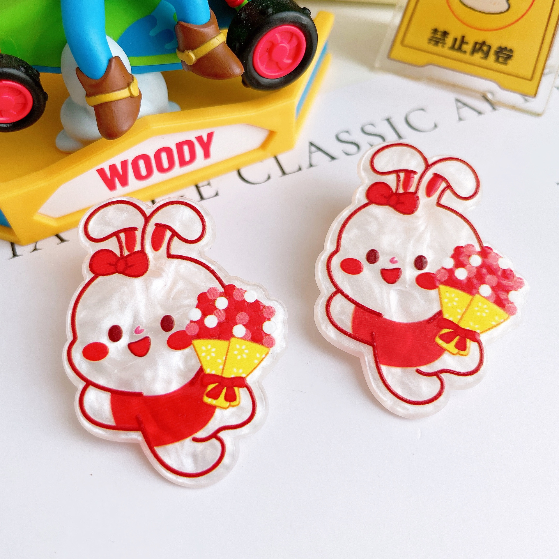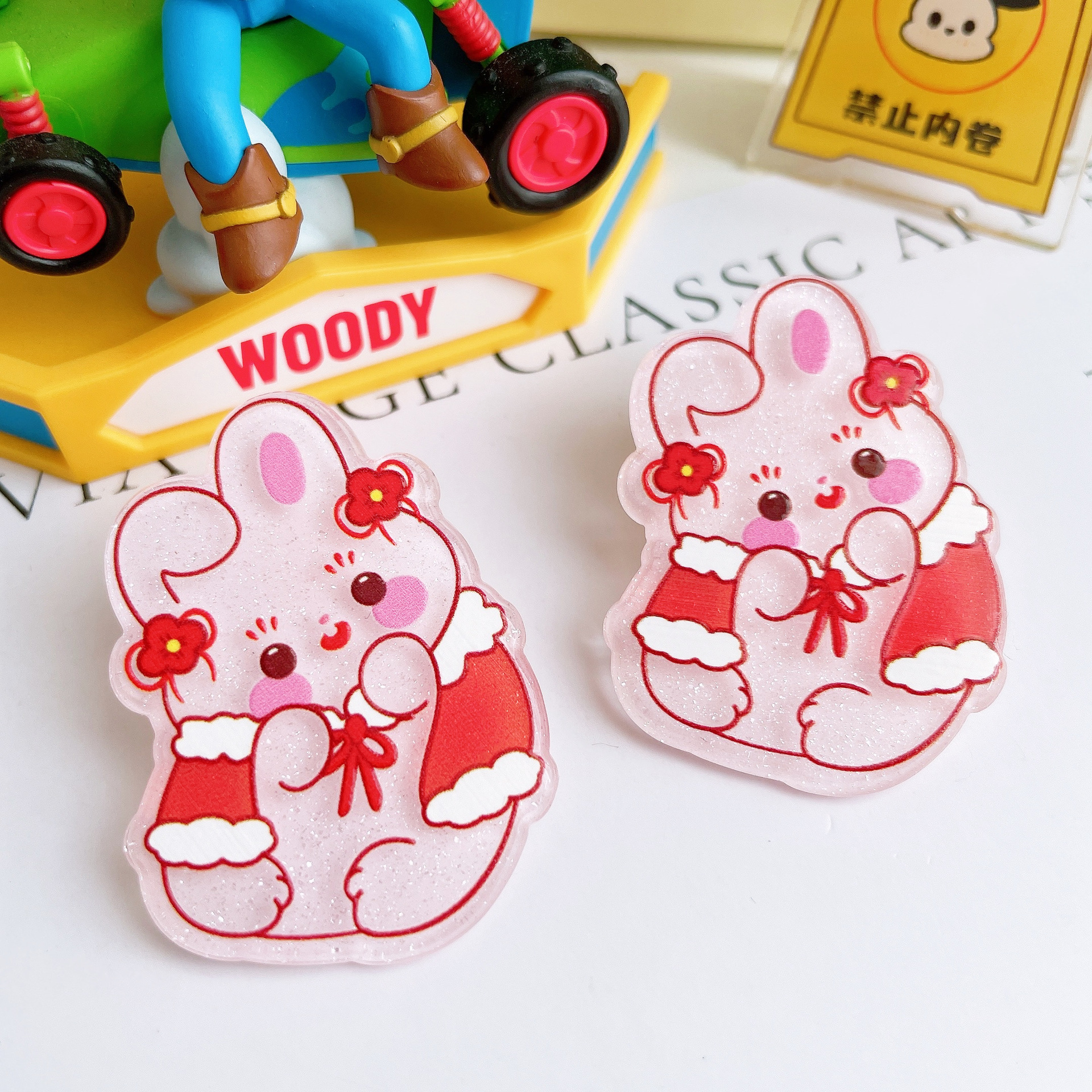 新年款福兔发财兔可爱卡通红色亚克力贴片diy饰品配件材料包批发