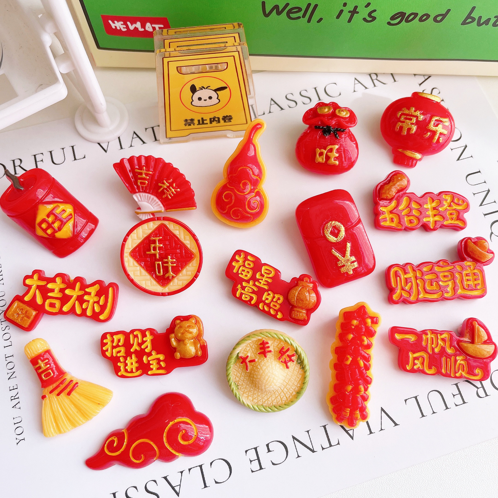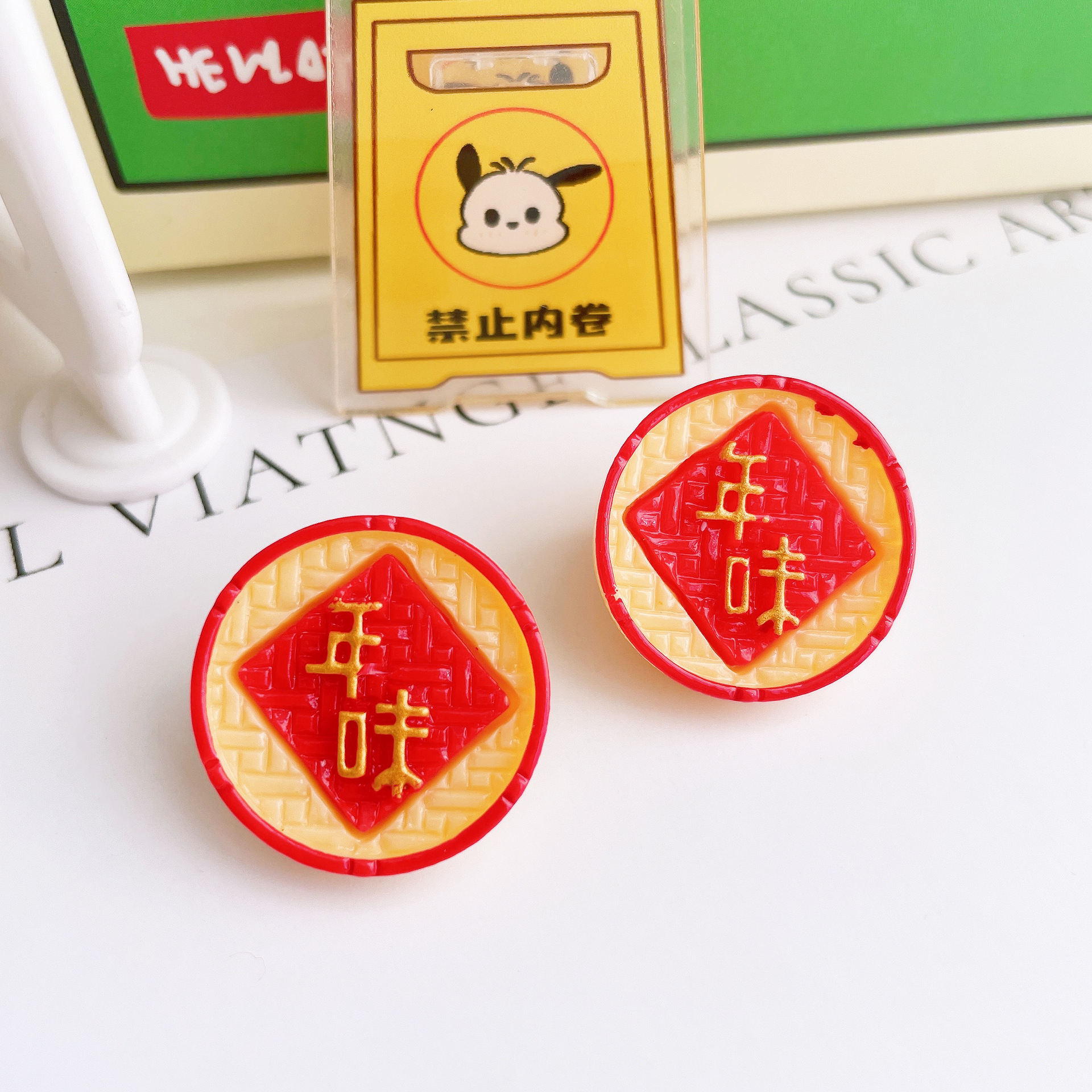 新年款中国红手机壳耳钉发绳发饰树脂配件饰品材料包diy