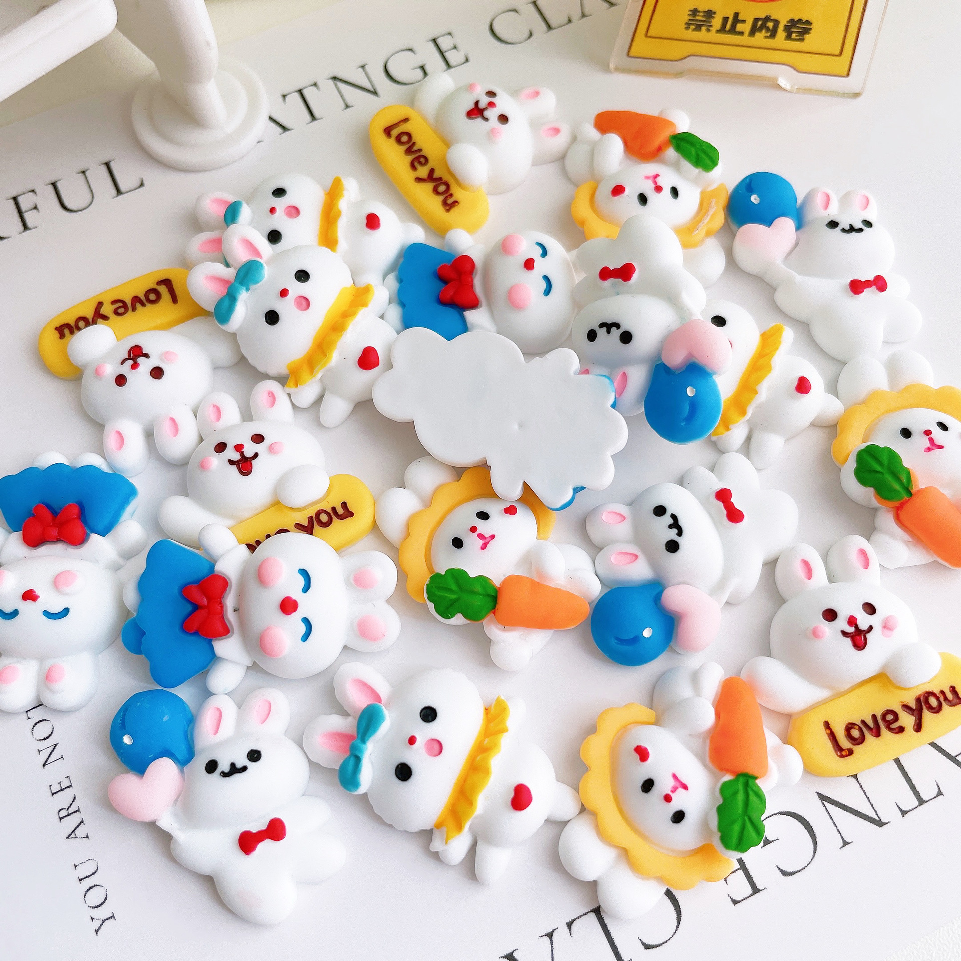 兔年大吉可爱卡通多表情兔兔 手机壳diy奶油胶树脂发夹发饰配件
