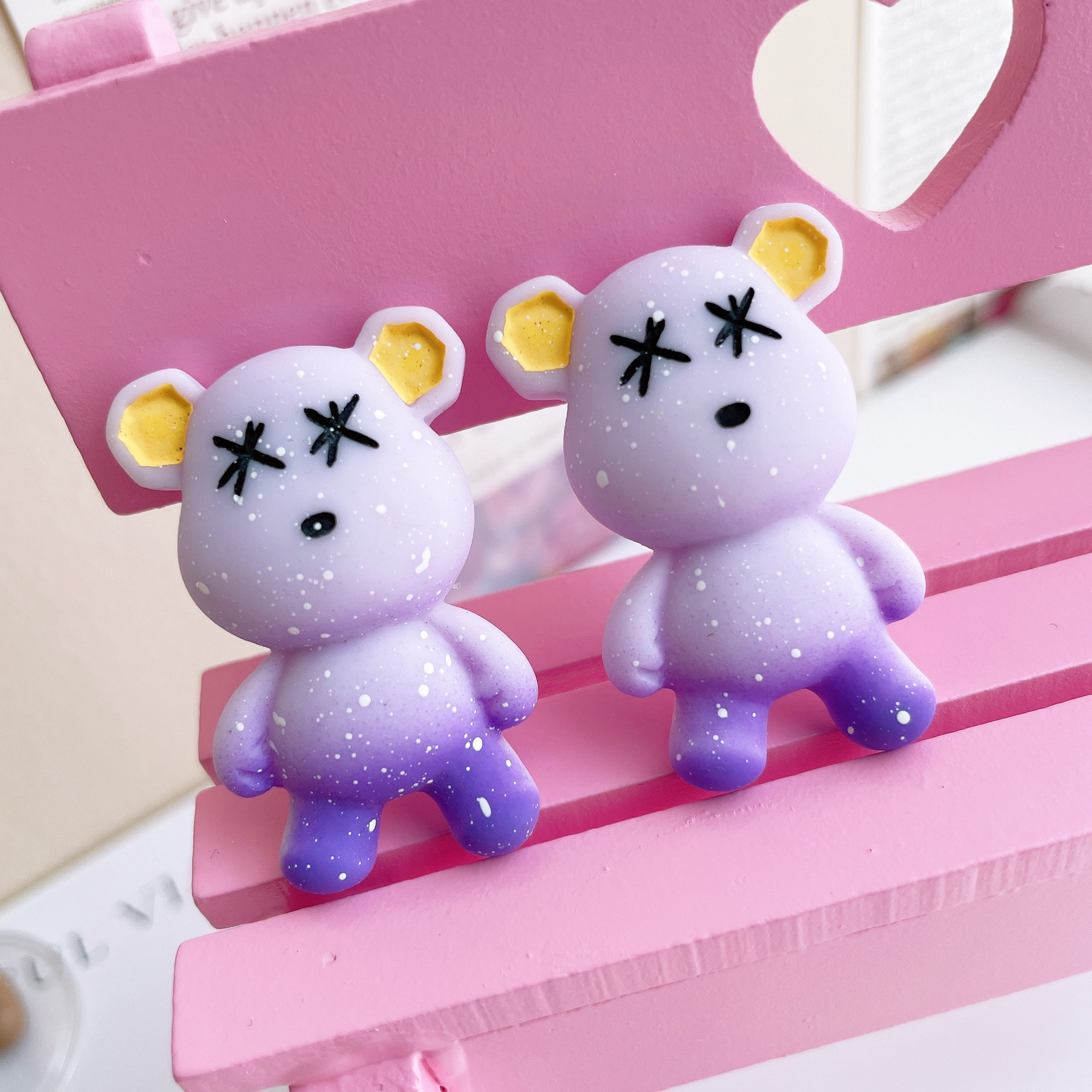 新款渐变星空暴力熊树脂配件DIY奶油胶手机壳发夹发饰冰箱贴材料