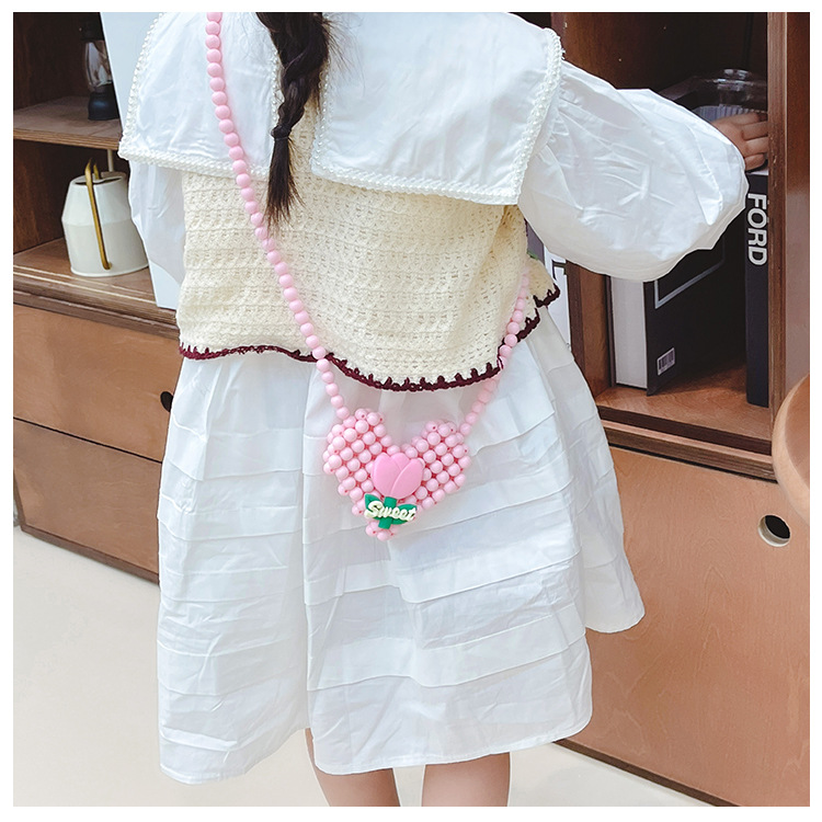 2023新款儿童配饰背包卡通爱心串珠单肩斜挎包洋气公主口红包批发
