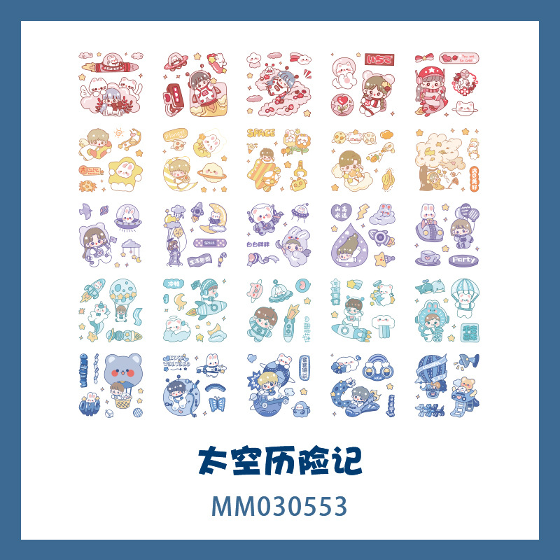 100张透明套盒装手账贴纸 可爱创意卡通少女心网红手帐小图案贴画