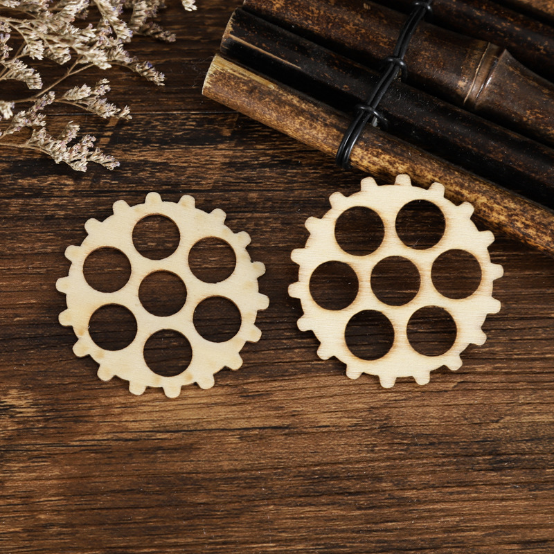 厂家批发齿轮木质工艺品加工定 制DIY圣节日居家饰品激光切割木片