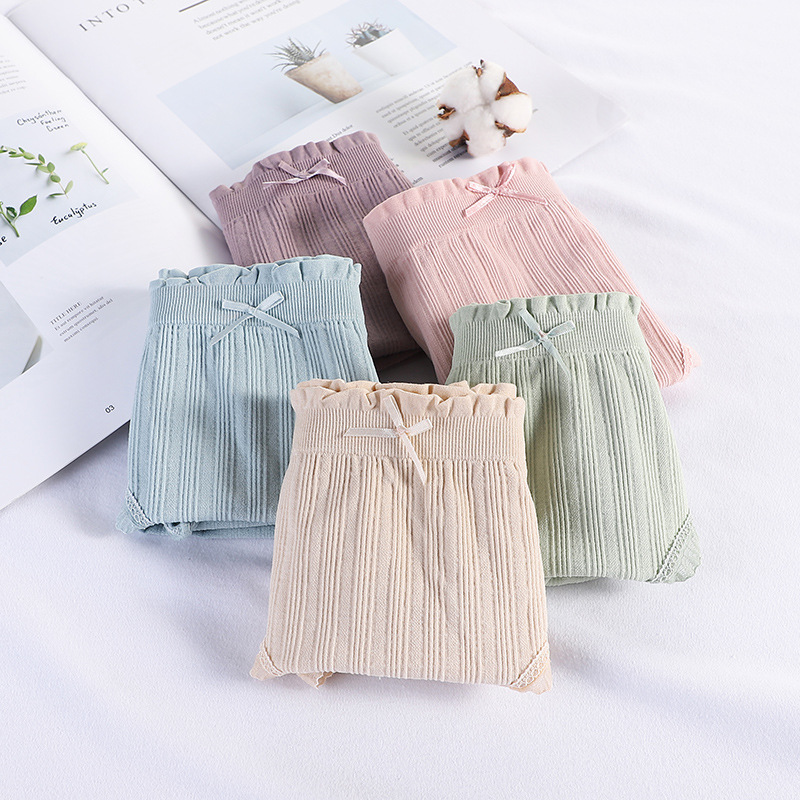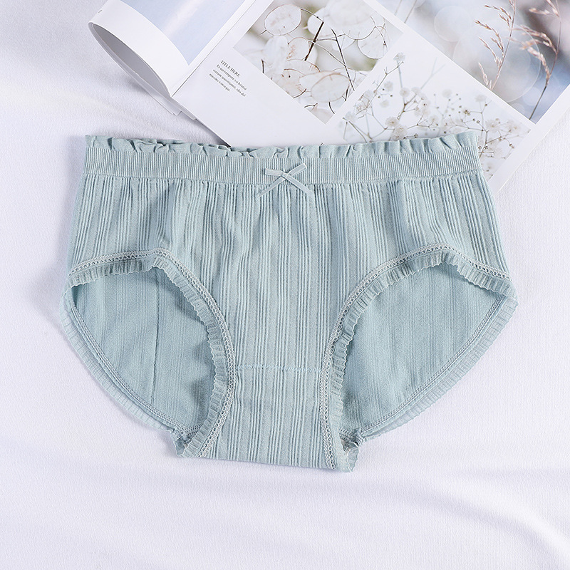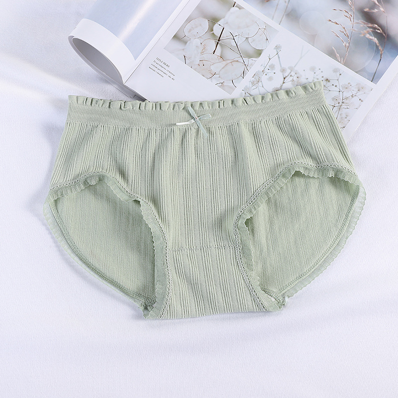 新品盒装螺纹棉女士内裤棉质底裆纯色蕾丝无痕内裤透气提臀三角裤 English | 投诉