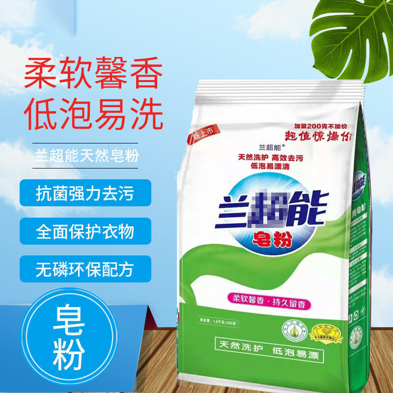 厂家批发1.6kg+200g家庭装持久留香去污易漂保护衣物天然皂粉 English | 投诉