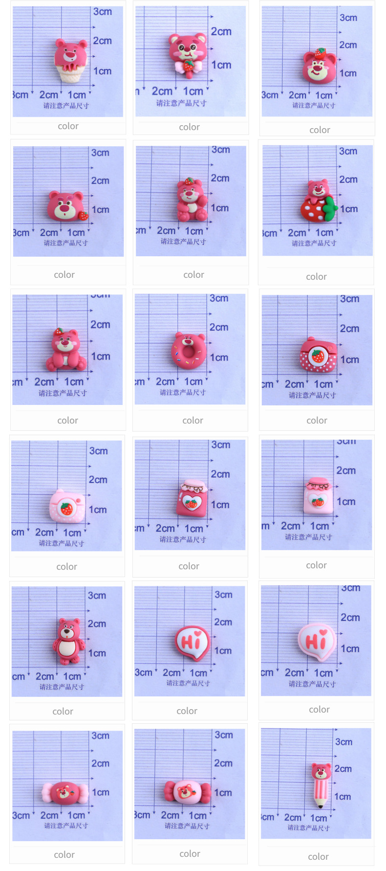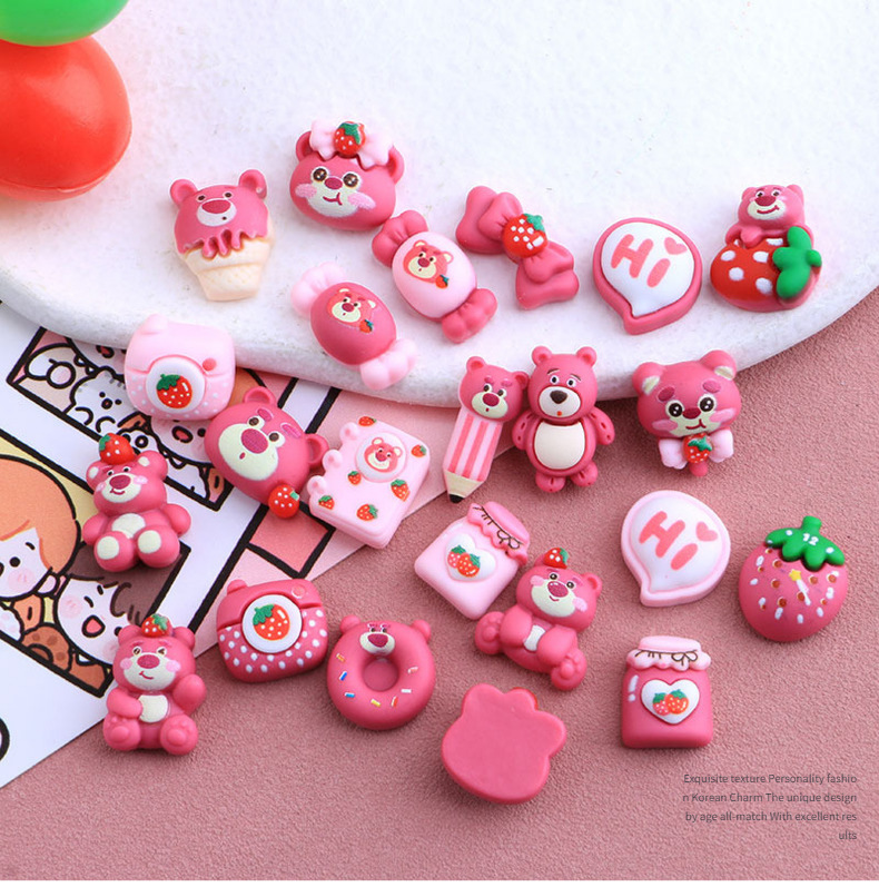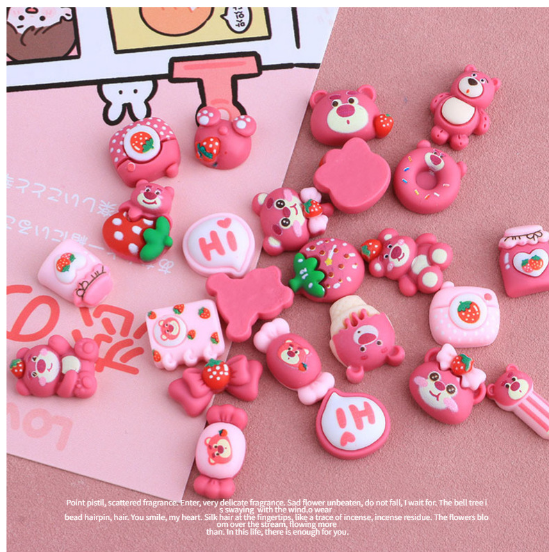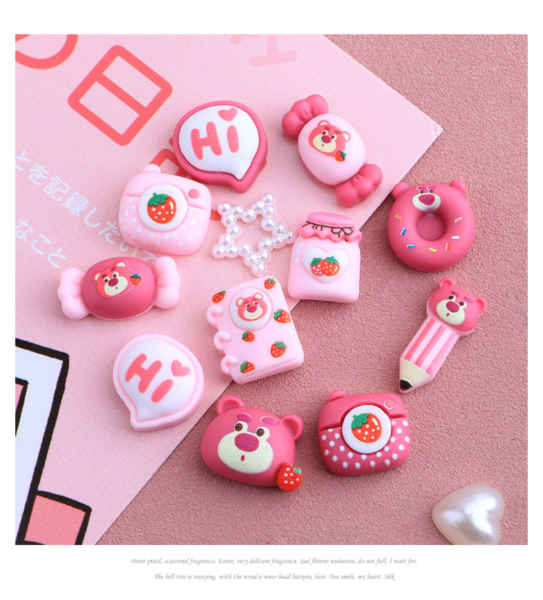 迷你小号卡通草莓熊DIY自制手工手机壳材料包发夹头绳树脂配件装