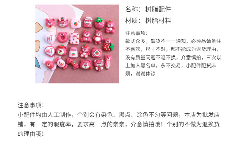 迷你小号卡通草莓熊DIY自制手工手机壳材料包发夹头绳树脂配件装 投诉