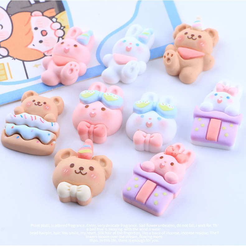 兔子熊熊系列奶油胶DIY自制手工手机壳材料包树脂配件批发头绳冰