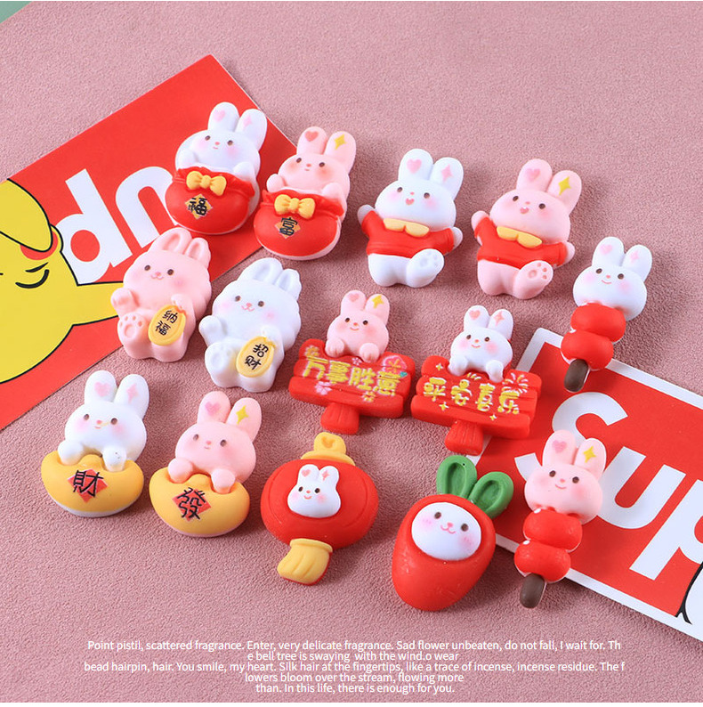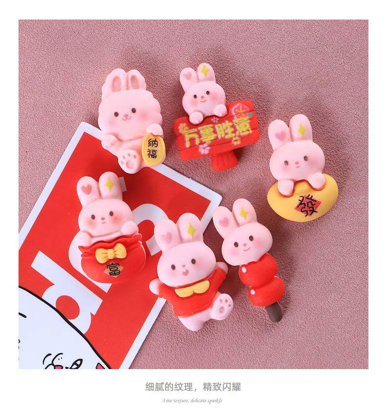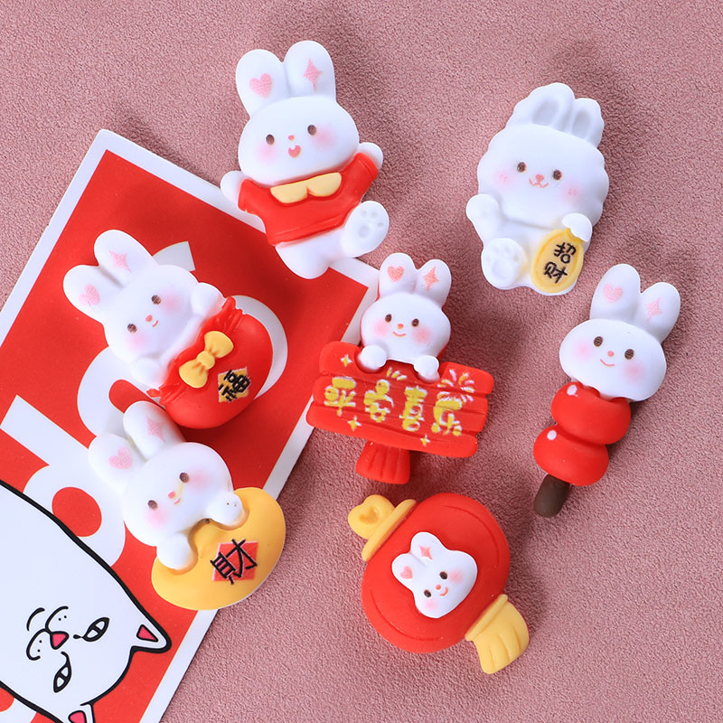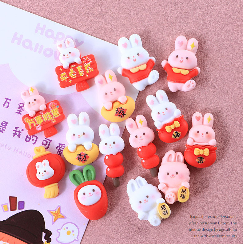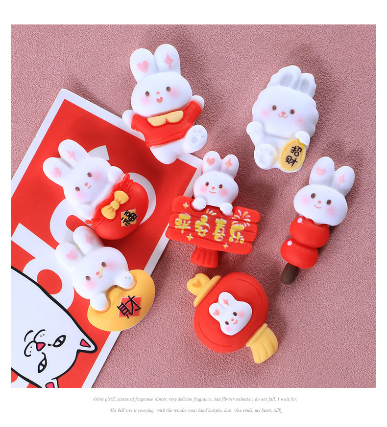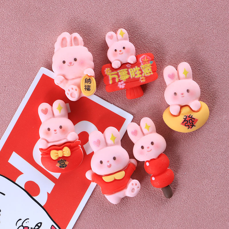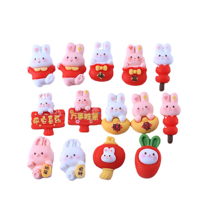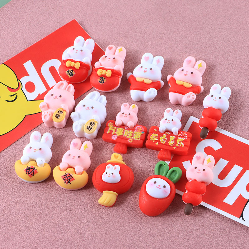 新年兔子十四款奶油胶DIY手机壳树脂配件批发发夹头绳装饰物材料