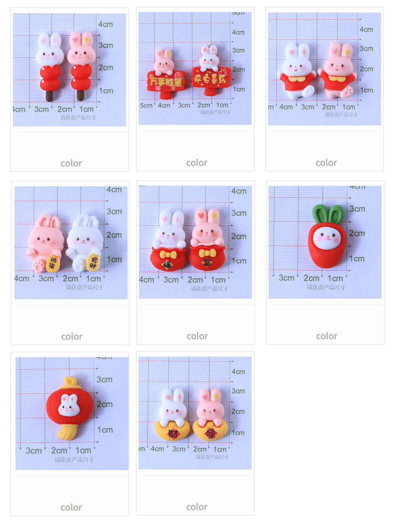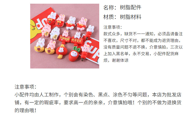 新年兔子十四款奶油胶DIY手机壳树脂配件批发发夹头绳装饰物材料 投诉