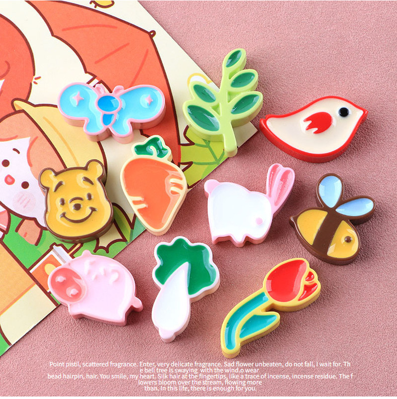 滴油可爱动物植物卡通DIY手机壳材料树脂配件批发手机壳发夹头绳