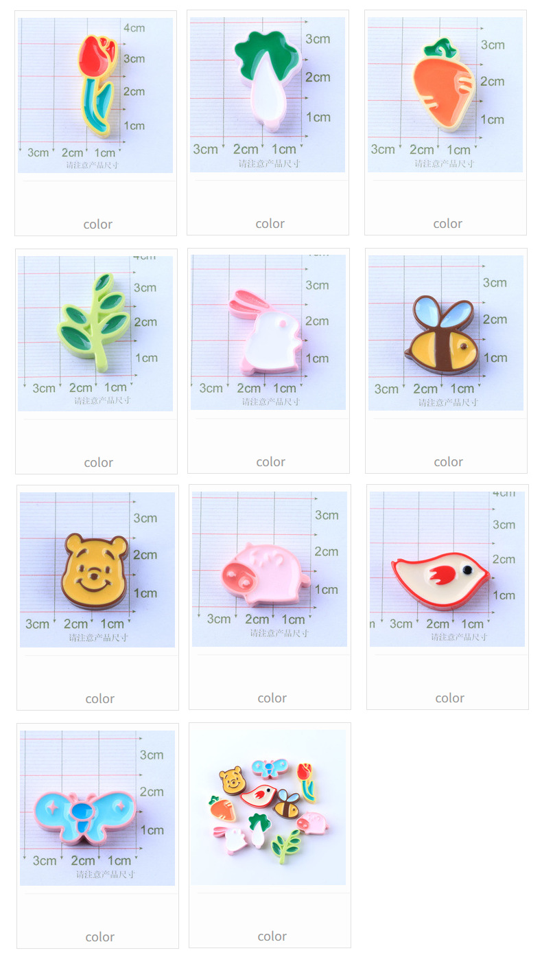 滴油可爱动物植物卡通DIY手机壳材料树脂配件批发手机壳发夹头绳 投诉