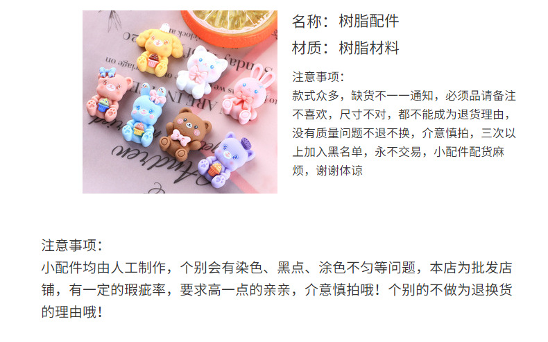 卡通兔子瓶子奶油胶DIY手机壳材料包树脂配件发夹头绳装饰品直播 投诉