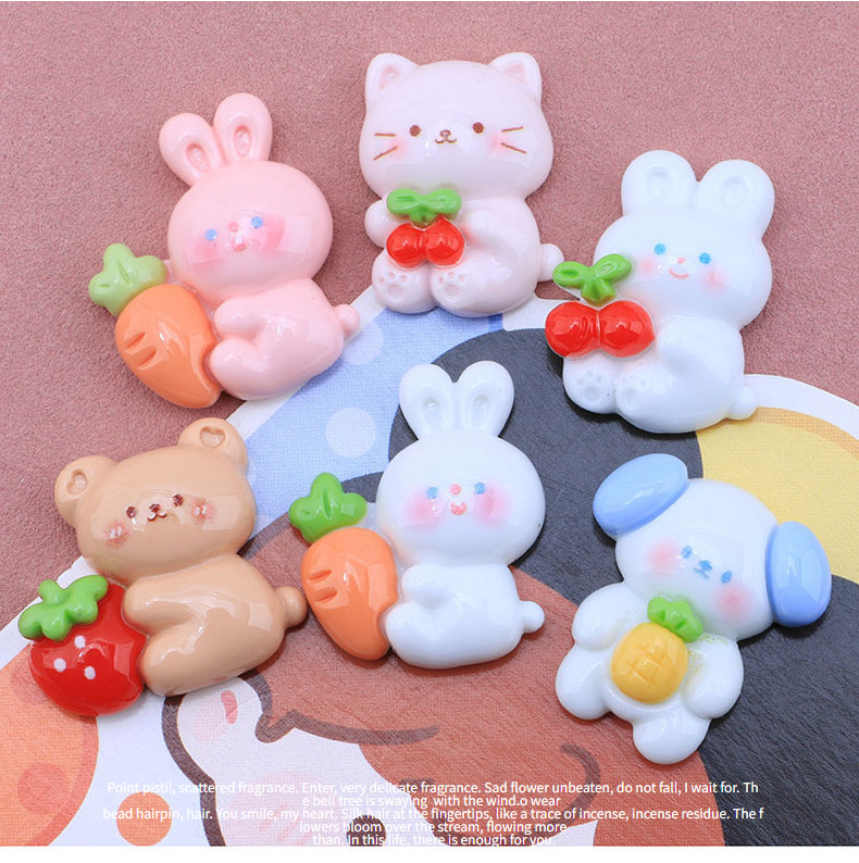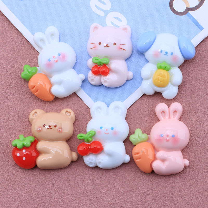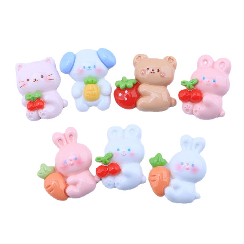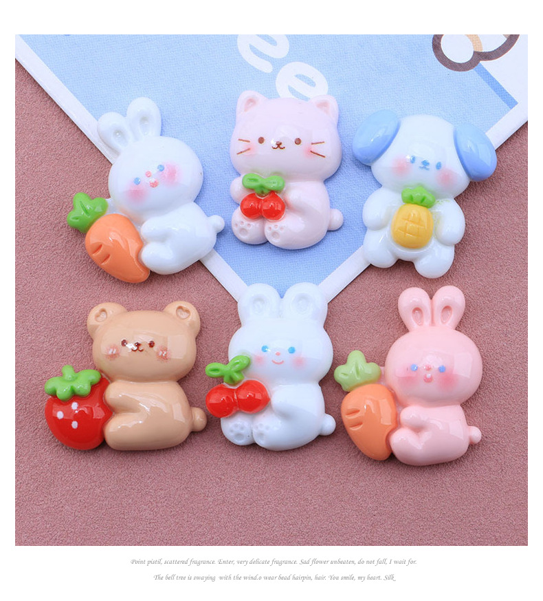 可爱亮面抱水果动物 diy奶油胶滴胶手机壳 发夹胸针饰品配件批发
