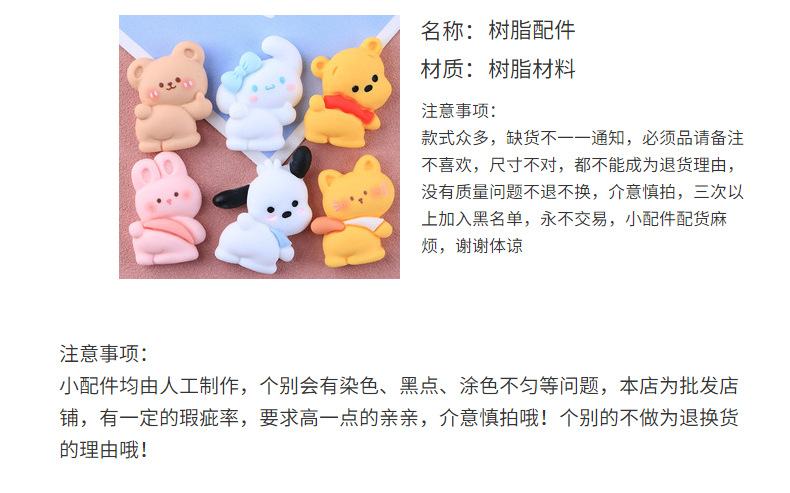 新款卡爱小动物diy自制 奶油胶手机壳文具盒发夹饰品树脂配件批发 投诉